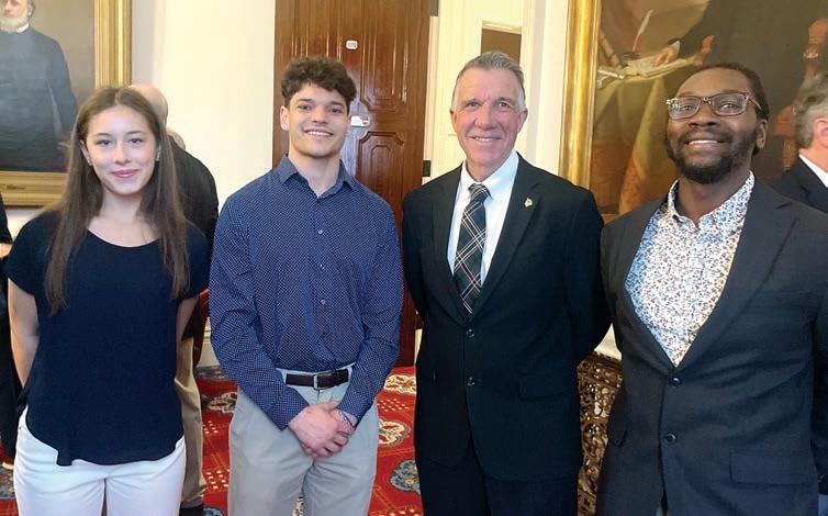 Juniper Galvani, Marcus Aliosi and Matt Meunier meet with Gov. Phil Scott to talk about a bill that would end the sale of flavored tobacco products in Vermont.