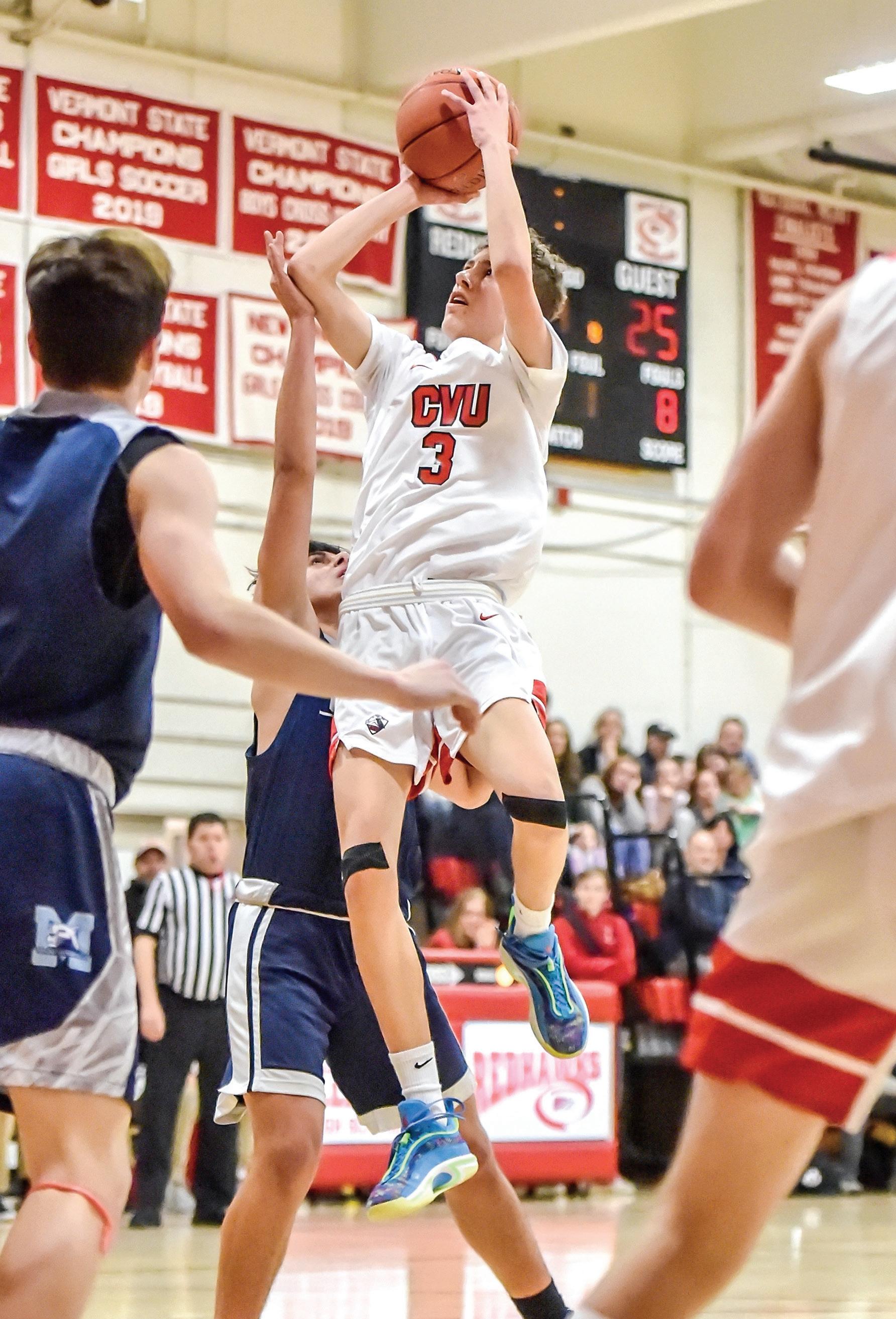 Colby Morehouse takes a shot during a CVU boys’ basketball game against Mt. Mansfield Union Jan. 27. More sports on page 10.