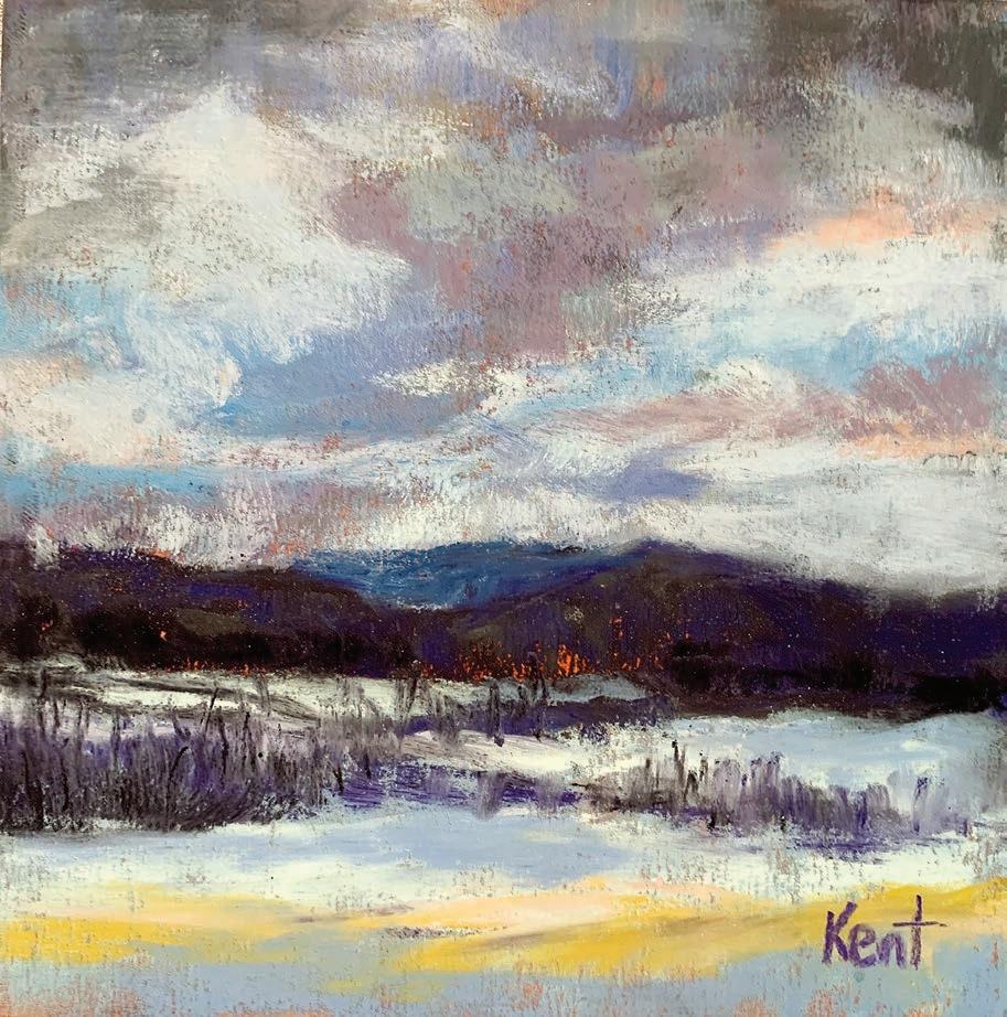 Kent works entirely in soft pastel, one that can offer amazing texture, luminosity and layering through pure pigments. She is captivated by the local landscapes and flora throughout the seasons and can be found painting daily at Frogs End Studio in Shelburne.