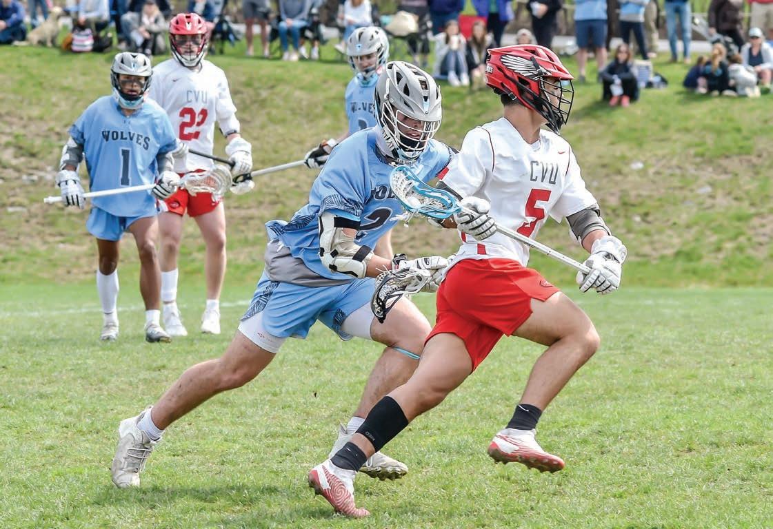 CVU’s Jacob Bose outruns a South Burlington opponent April 23 in a 9-8 win. Bose had two goals and two assists. See more sports on page 10.