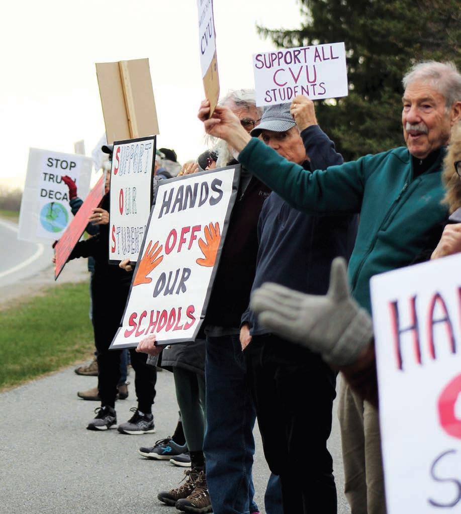 Morgante and others have been regularly protesting the Trump administration’s policies at the intersection of Route 116 and CVU Road, just down the street from the high school, since mid-March. Moving the protest this past week allowed them to focus more on issues facing students.