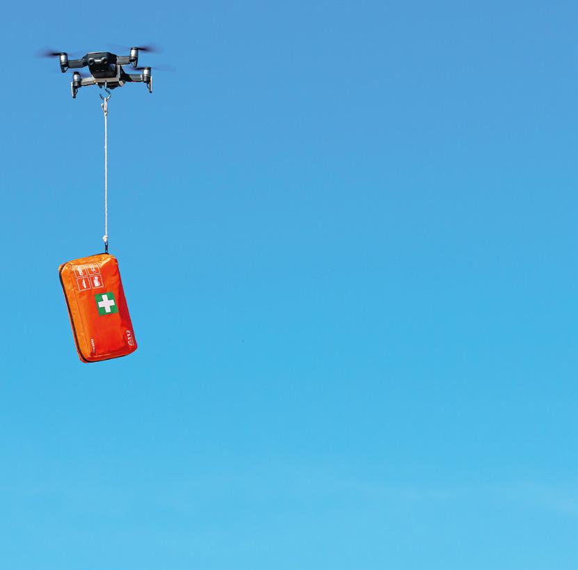 – Här rör det sig om tyngre transporter, 10–15 kg. En viktig del är att testa om drönarna kan mellanlanda i Nikkaluokta och ladda sig automatiskt. Energimyndigheten finansierar projektet som har en lång rad partner. En viktig partner är företaget Bussgods i Norr AB som kör samordnade godsoch persontransporter i glest bebyggda trakter. Till deras utlämningsställen kan det komma bilar som har kört långt för att hämta ett paket. Att ersätta bilresorna med drönartransporter skulle ge stora miljövinster.