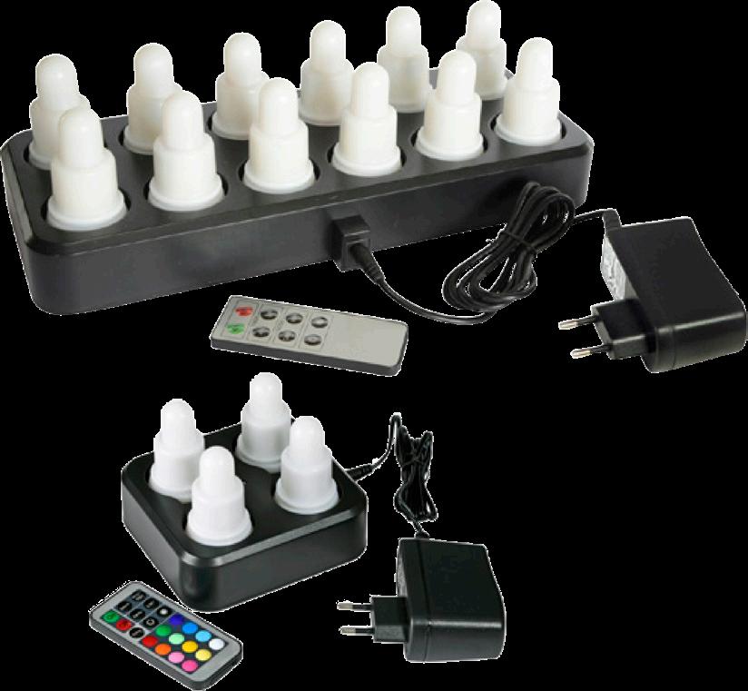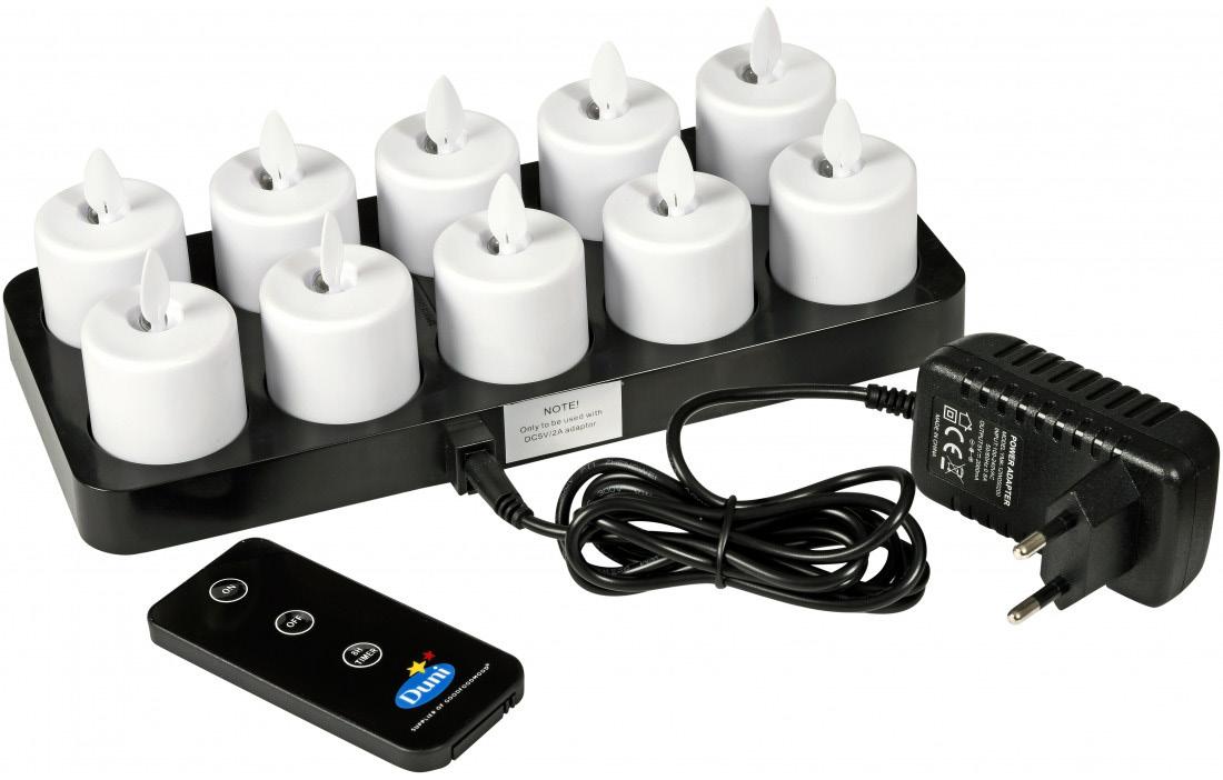 LED mini lamper: 13 t brændetid, 8 t opladningstid. 1 base, 1 adapter og 1 fjernbetjening medfølger.