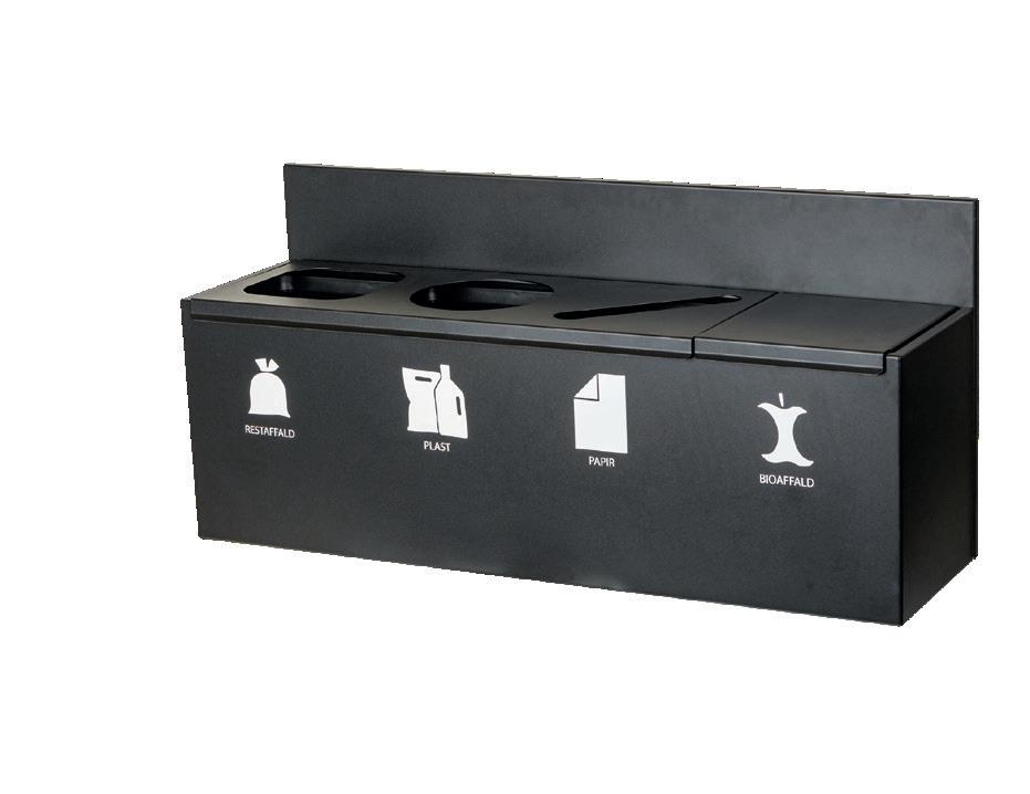 Affaldsbeholder 60 l affaldsbeholder, 4 rum. Mål: 30 x 120 x 80 cm Varenr: 11000504 Cover til 60 l Kvadratisk cover til PURE Affaldssystem. Varenr: 11000505 Cover til 100 l Kvadratisk cover til PURE Affaldssystem. Varenr: 11000508