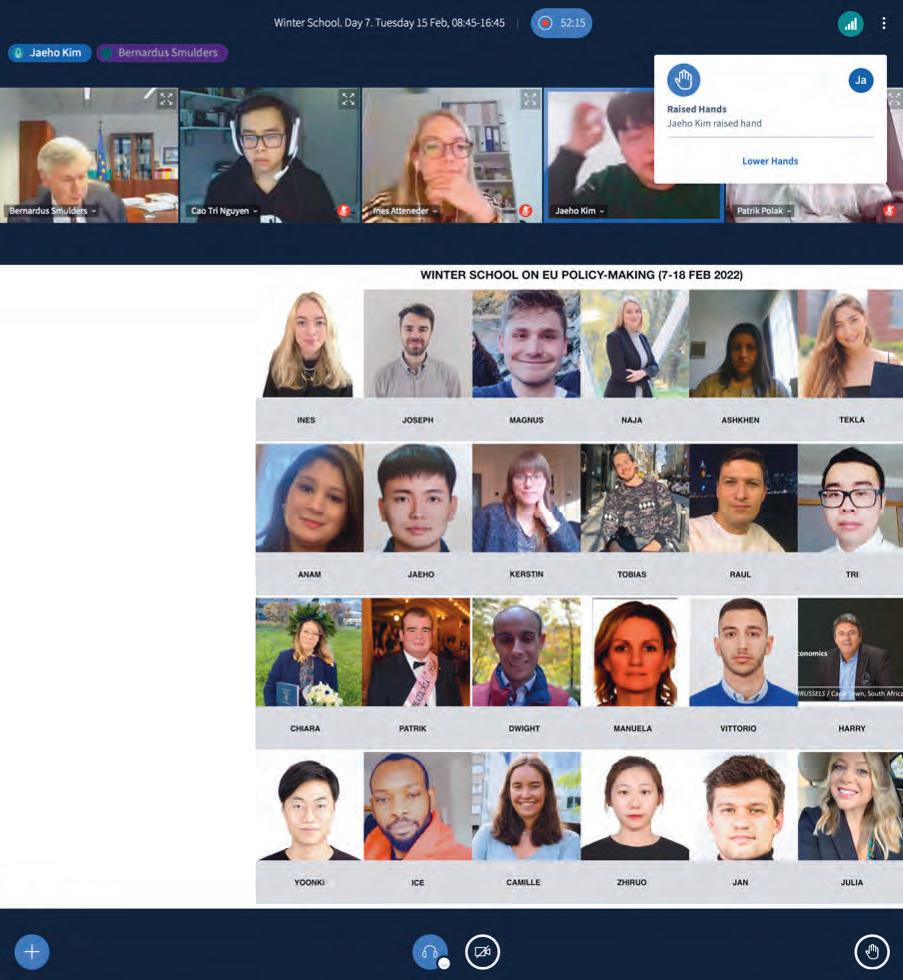 The creation of the Brussels School of Governance sought to increase the synergies between the educational offering of IES and Vesalius College. Various elements of both institutions’ programmes were aligned. Since then, both faculty and support staff across IES and Vesalius work as one integrated team. As regards the VUB’s ES and RC faculties, a process of streamlining the complementarity in MA-level programmes has been initiated. This included reviewing the IES LLM curriculum, a new version of which was implemented in the Fall 2022 semester, and consolidating the EuroMaster as a MaNaMa-level successor to the ES-led MSc in European and International Governance (in which IES staff act as service providers). Collaboration with the EUtopia network has increased in 2022, e.g. with the joint IESEutopia simulation exercise during the second edition of the IES’ Winter School in February 2022, two PhD bursaries (one in our Centre for Digitalisation, Democracy and Innovation and one in our Centre for Security, Diplomacy and Strategy) financed by EUTOPIA, the setting up of a EUTOPIA Connected Research Community (TRAPTS), and EUTOPIA member Warwick University acting as an important partner in the preparation of our EUIA23 conference.