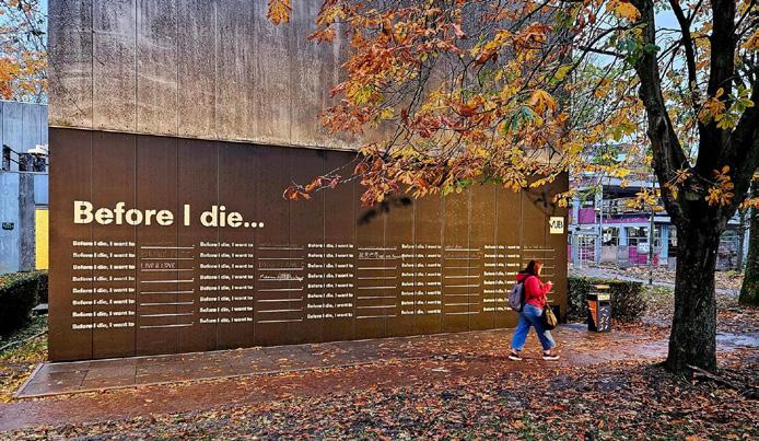 The wall is part of a global art project and invites the VUB community as a whole to reflect on the things that truly matter, such as our own mortality. The concept was developed by artist Candy Chang in New Orleans. Worldwide, there are already more than 5,000 'Before I Die' walls in over 35 languages in 75 countries including China, Argentina, Italy, Iraq, Finland, India, Japan and South Africa. The latest wall is now in Brussels, on the VUB campus in Etterbeek.