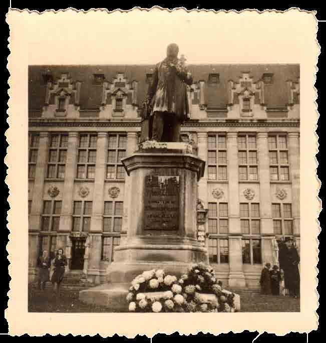 1 november 1946: bloemenhulde bij het standbeeld van Verhaegen.