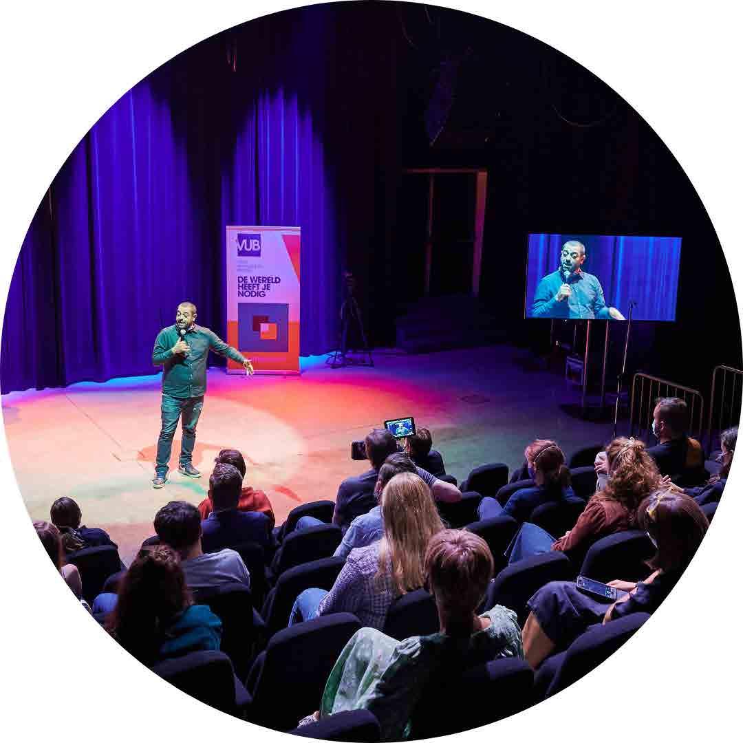 Meer impact creëren, dat is wat de VUB wil doen door haar bevindingen uit de wetenschap te delen met iedereen die wil. We doen dat aan de hand van een breed publieksprogramma voor verschillende doelgroepen in Brussel en Vlaanderen: van lezingen tot tentoonstellingen, van boeken tot theaterstukken. Onze wetenschappers, alumni en tal van partners werken eraan mee. Het begint bij kennis delen, maar daar stopt het niet bij. We dagen je ook uit om zelf kritisch na te denken. Want verandering in de wereld, die begint bij jezelf. Door je eigen kennis tegen het licht te houden en in vraag te stellen, kom je tot nieuwe inzichten én oplossingen. Vind je net als wij dat het anders kan, nee, móet in de wereld? Ontdek ons publieksprogramma op www.vub.be/publieksprogramma