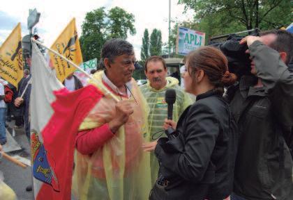 En la manifestación en favor de las cuotas lácteas en Estrasburgo. Julio 2009.