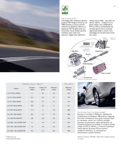 Filter za čestice (FAP) Tehnologija HDi, ekskluzivni element grupacije PSA Peugeot Citroen je od 2000 povezana sa veoma moćnim sistemom za depoluciju, filterom za depoluciju FAP. Peugeot je bio prvi konstruktor koji je serijski opremio određena svoja vozila ovim sistemom. Njegov filter definitivno