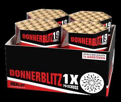 De Donnerblitz van Herlat bevat 76 schoten van het grootste kaliber met een maximale kruitvulling van 25 gram per schot. 4 cakes.