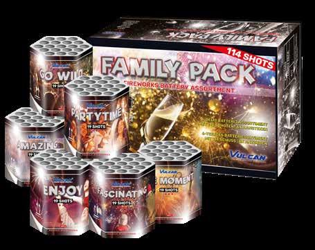 Familiepakket cakes. Een assortiment van 6 verschillende 19 schots kwaliteits batterijen.