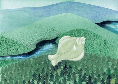 Vuosaarelaisen Jaana Ojalaisen Kampelan tarina -akvarellisatunäyttely on esillä 31.1. asti Vuotalossa (2 krs., Mosaiikkitori 2).