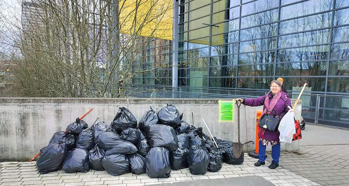 Talkoolaisia Mustakiven leikkipuistossa. Kuva: Roska päivässä Vuosaari -ryhmä