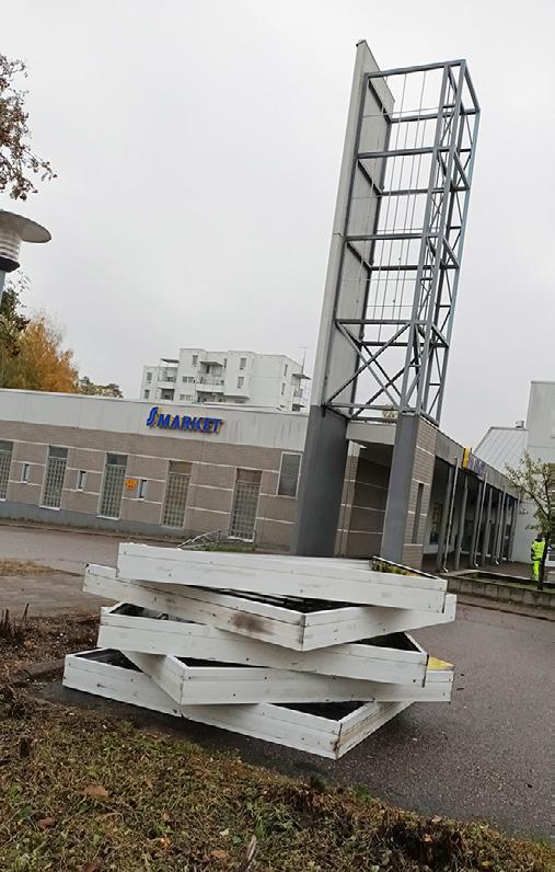 Keskiviikkona 9.10. puhaltanut myrskytuuli riepotteli Vuosaaressakin. Lohikäärmepuistossa Satamasaarentiellä puu kaatui lasten leikkitelineen päälle rikkoen kiipeilytelineen (kuva ylhäällä). Hyvää onnea oli matkassa, ettei telineellä ollut sillä hetkellä lapsia leikkimässä.