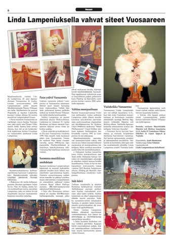 Vuosaaressa Linda Lampeniuksen voi nähdä lauantaina 11.11., kun hän tulee Vuotaloon konsertoimaan ja kertomaan ruotsiksi elämästään juontaja Bettina Sågbomin vetämään Maestro och Bettina -iltaan. Vanhoilla lapsuuskulmilla esiintyminen tuntuu taiteilijasta ”erityisen ihanalta”. – Esiinnyn hyvin harvoin Suomessa, ja minusta kirjoitetaan Suomessa harvemmin viulistina. Nyt kerron opinnoistani, urastani ja rakkaudestani musiikkiin. Tärkeintä on kuitenkin, että saan soittaa suomalaiselle yleisölle, Linda Lampenius miettii Vuotalon keik-