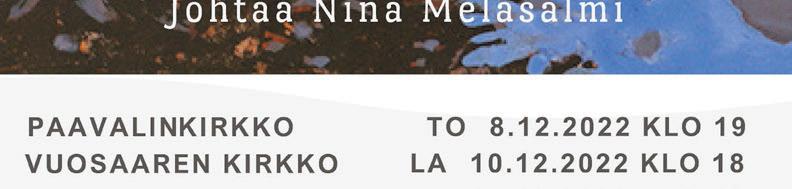 Kuoroa johtaa Nina Melasalmi. Konsertteihin on vapaa pääsy, kä siohjelma ovelta 20 €.