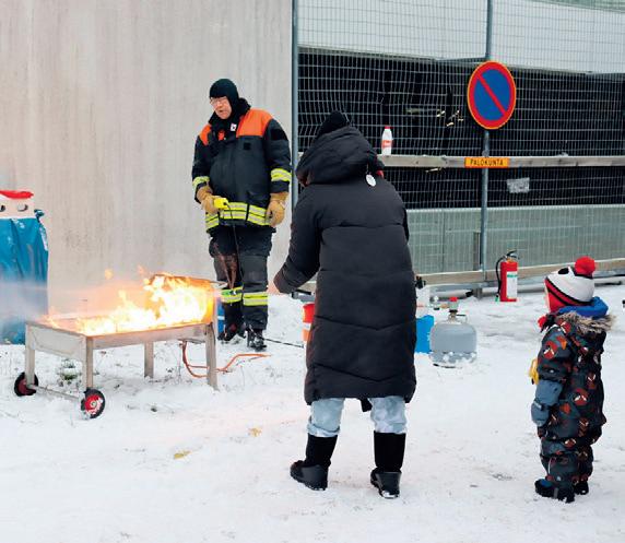 Perheen pienimmille oli tarjolla monenlaista nähtävää ja koettavaa. Mutta myös aikuiset vie raat pääsivät kokeilemaan tai kertaamaan käsi sammuttimella sammuttamista.
