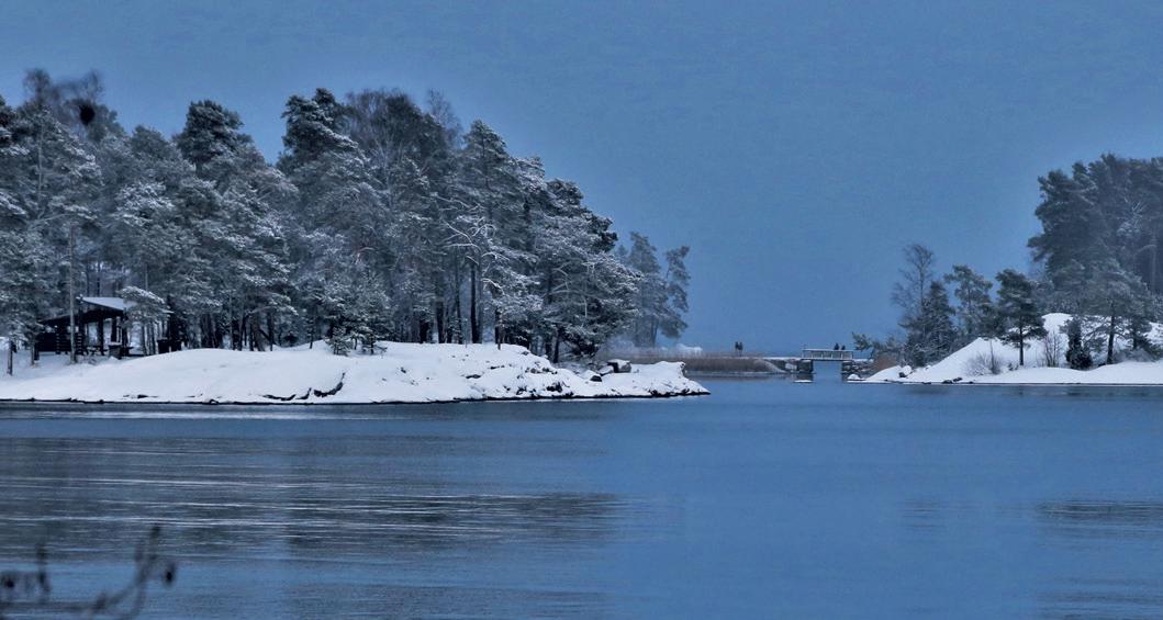 Nuottasaaren sillalla muutamat nauttivat lumen ja meren maisemasta. Kuva: Matti Koivisto