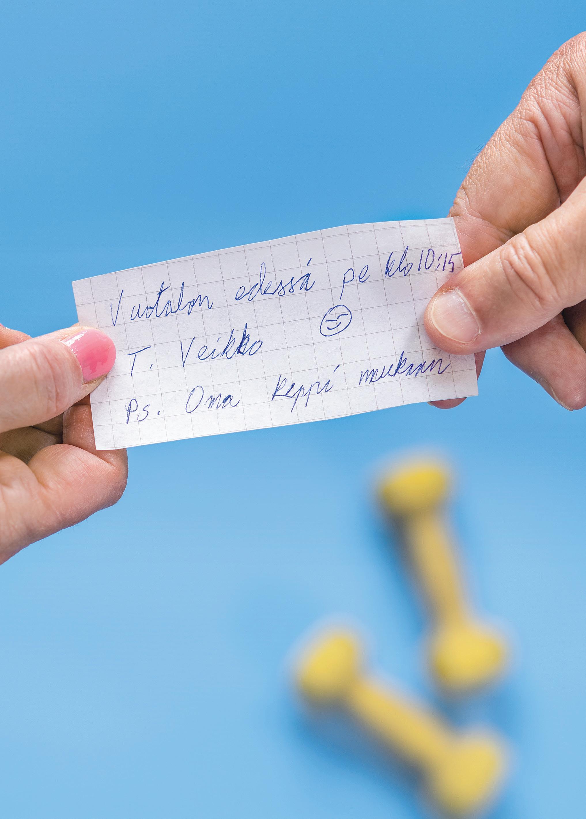 seuraa seuraa. Kenen liikuntaseura sinä voisit olla? Lähelläsi liikkuu seuraa. Lähde liikkeelle ja käy katsomassa voisitko tarjota omaa seuraasi tai löytää uutta liikuntaseuraa itsellesi. Osallistu maksutta Vuotalon edessä ulkokeppijumppaan pe 9.12. ja pe 16.12. klo 10.15–10.45. Oma keppi mukaan. Olet lämpimästi tervetullut! Kysy lisää lähelläsi olevista liikuntamahdollisuuksista Liikuntaluurista. Liikuntaluuri palvelee puhelimitse arkisin maanantaista torstaihin kello 13.00–15.00. Puheluun vastaa kaupungin liikunnanohjaaja. Puhelusta veloitetaan vain normaali puhelumaksu oman operaattorisopimuksen mukaisesti. Liikuntaluuri puh. 09 310 32623 helsinkiliikkuu.fi/liikunnastaseuraa