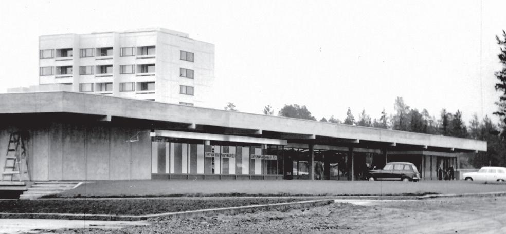 Eteläinen ostoskeskus vuonna 1967 ja sama paikka vuonna 2025