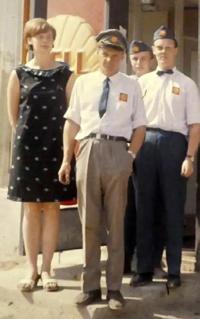 Kuvassa Erkki Paarmas henkilökuntineen uuden huoltamon pihalla 1966. Erkki toimi yrittäjänä Vuosaaressa vuosina 1966–92 ja hänen poikansa Timo 1992–94. Vanhat kuvat: Jussi Paarmaksen kotialbumi
