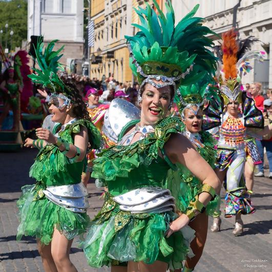 – Klo 11 ja 12.45 Sambakoulu Império do Papagaion kulkue.