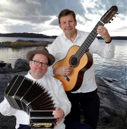 Sven Bertil Taube. På scen ser vi Pentti Hildén (sång och gitarr) samt Mikko Helenius (bandoneon, dragspel, piano och sång). Konsertens längd är ca 60 min. utan paus. och språket är svenska. Biljetter à 10/8 € fås från Lippu.fi eller biljettautomaten vid dörren (endast kortbetalning).