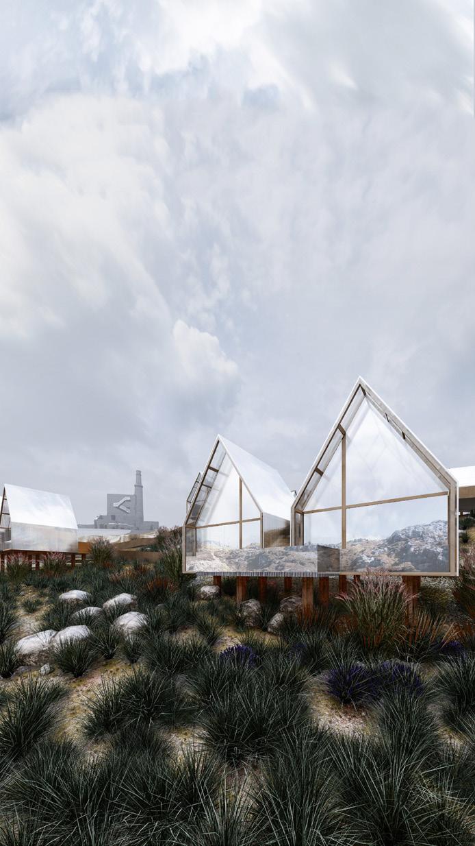 Vùng đất Ireland mang trong mình vẻ đẹp thiên nhiên đầy mê hoặc. Nơi mà sự im lặng đến kỳ lạ tất cả những gì chúng ta có thể nghe được là âm thanh của thiên nhiên Gió hú qua các khe núi, âm thanh xào xạc của thảm thực vật và các lớp địa chất tự nhiên. Thiết kế một khu thiền trong khu phức hợp di sản mỏ công nghiệp cũ là một điều rất thú vị. Đứng trước di sản, con người trở nên và cảm thấy mình thật nhỏ bé, vì thế một cách tiếp cận khiêm tốn trở thành sự lựa chọn. Lựa chọn hình thức xây dựng phân tán là đúng đắn giải pháp cho bối cảnh di sản khi chúng ta không can thiệp quá nhiều và phá hủy địa chất tự nhiên. Sử dụng sự phản chiếu của những tấm gương và sự xuyên thấu thị giác của người tàng hình các tấm để tạo lớp vỏ cho tòa nhà, từ đó tạo ra một kiến trúc ẩn hiệu quả ý đồ dự án. Một bối cảnh hài hòa với thiên nhiên và di sản nhưng vẫn đầy đủ các công năng và tiện ích được sử dụng cho một khu thiền định. Mỗi công trình sẽ phản chiếu và ghi lại mọi khoảnh khắc của thiên nhiên trong ngày cũng như trong nhiều năm.