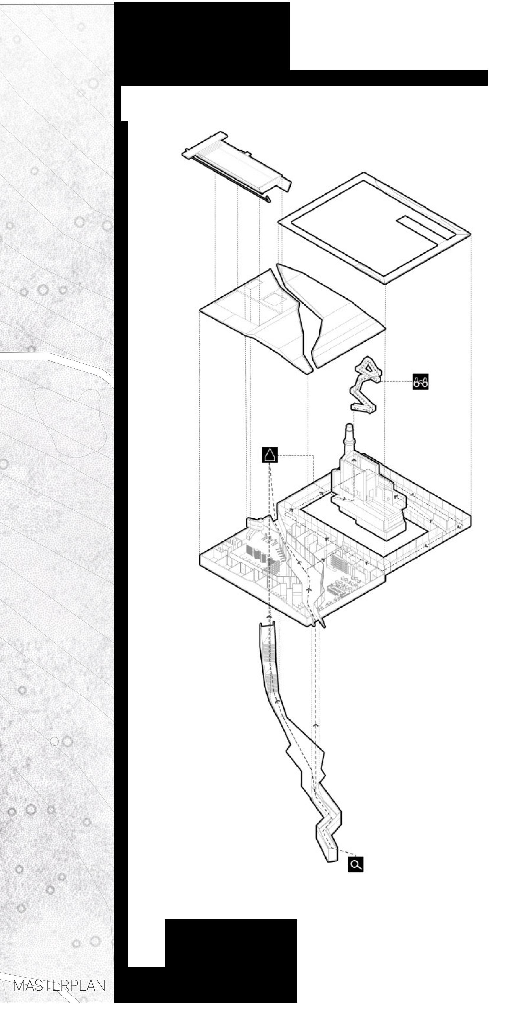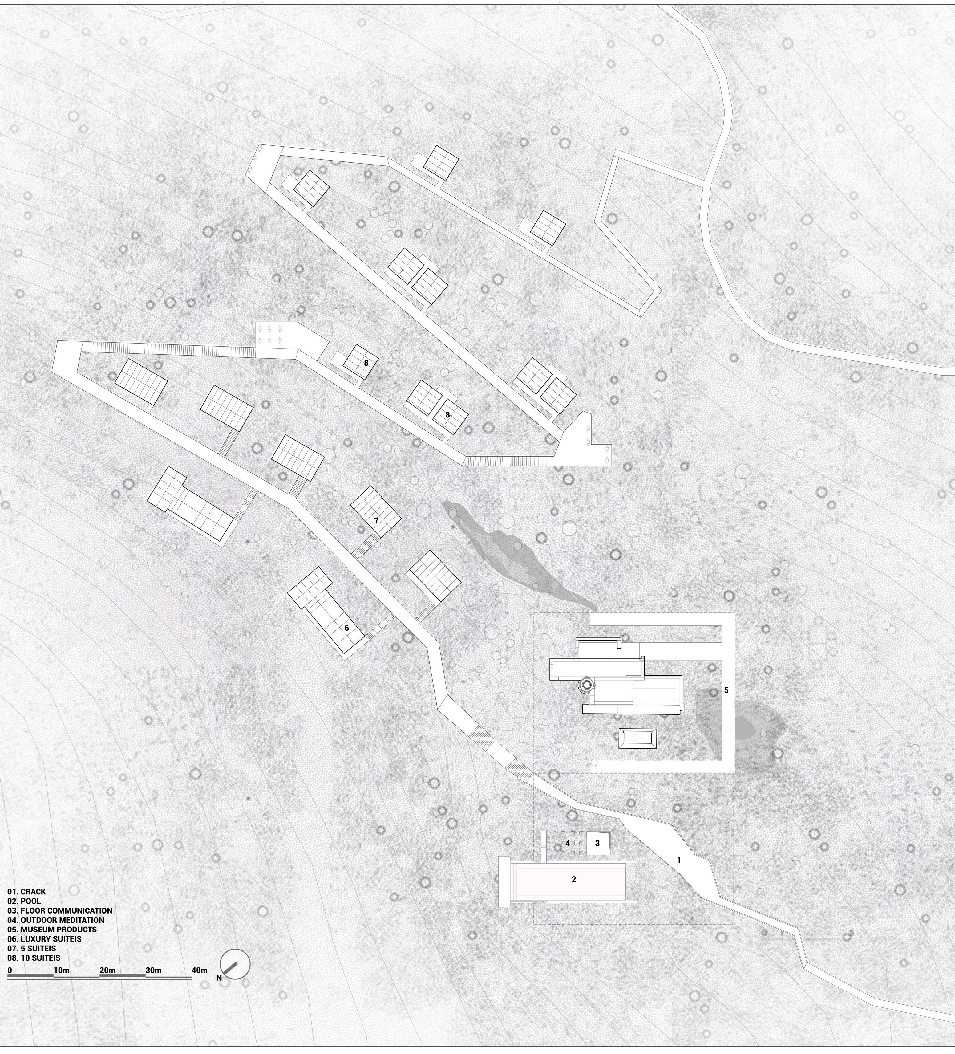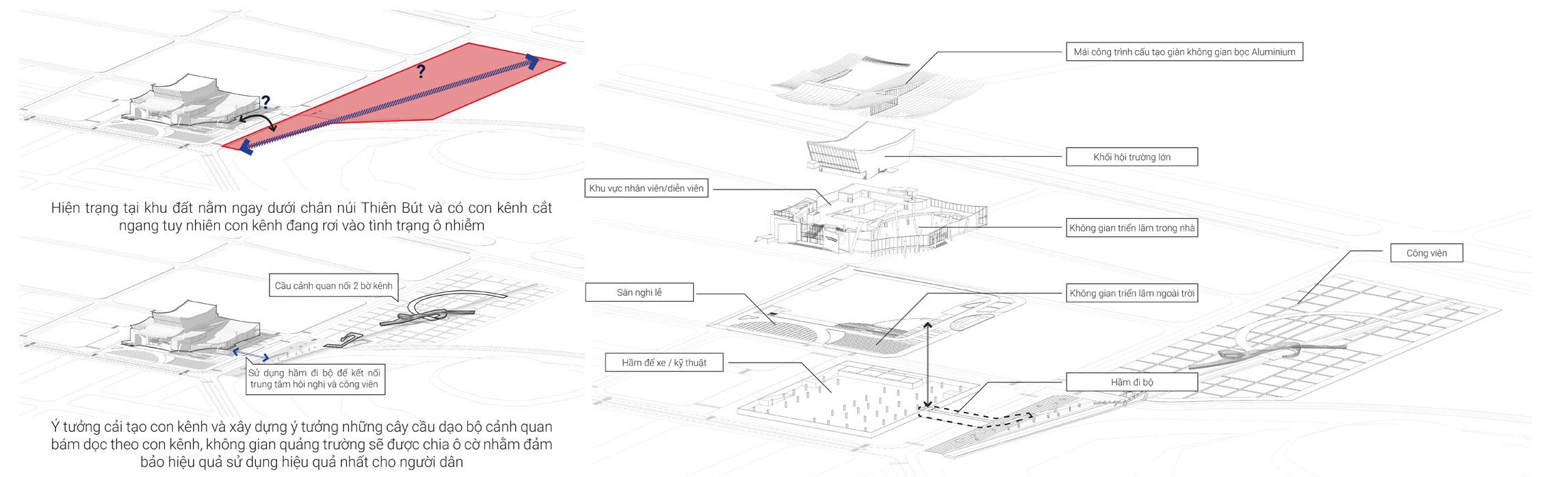 No where - Now here : Từ sự hữu hình của tồn tại vật chất đến sự vô hình của ý thức. Yêu cầu của cuộc thi là thiết kế 1 chuỗi không gian đáp ứng cho nhu cầu phát triển khu vực trở thành nơi nghỉ dưỡng cao cấp với thiền định là yếu tố chủ đạo trên nền của một hầm mỏ cũ.