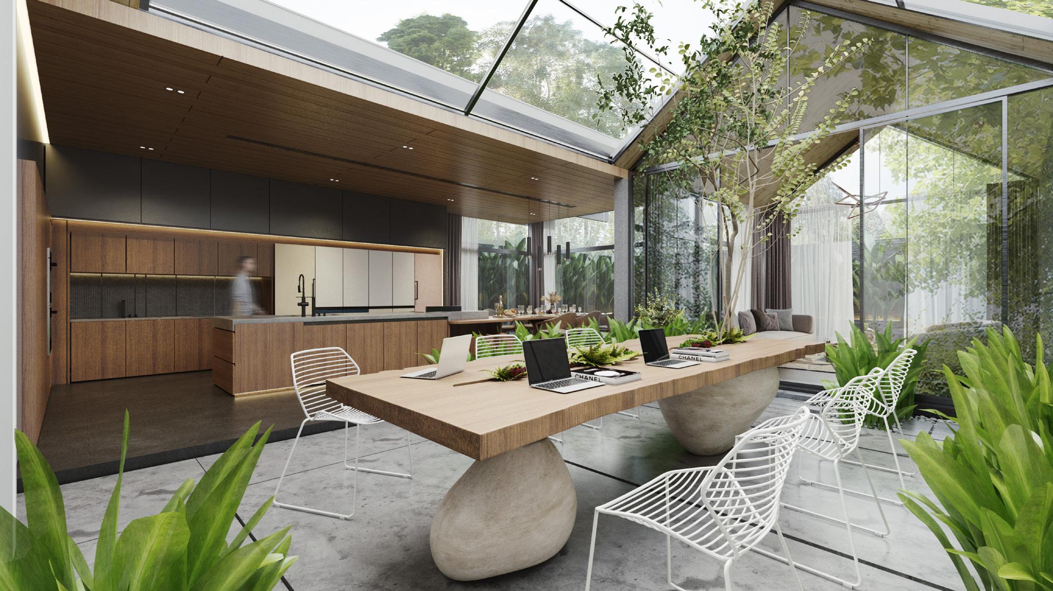 Tiếp nối câu chuyện của “the CURVE”, không gian bếp giờ đây không chỉ còn đóng vai trò như một không gian để làm nền, background cho các cảnh quay mà còn cần đan xen vào đó những không gian kết nối với thiên nhiên để vừa đáp ứng nhu cầu về công việc cũng như cuộc sống của người sử dụng. Điều này đặc biệt quan trọng trong giai đoạn dịch COVID hoành hành và mọi người phải lockdown và work from home.