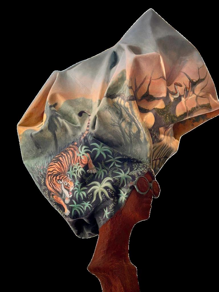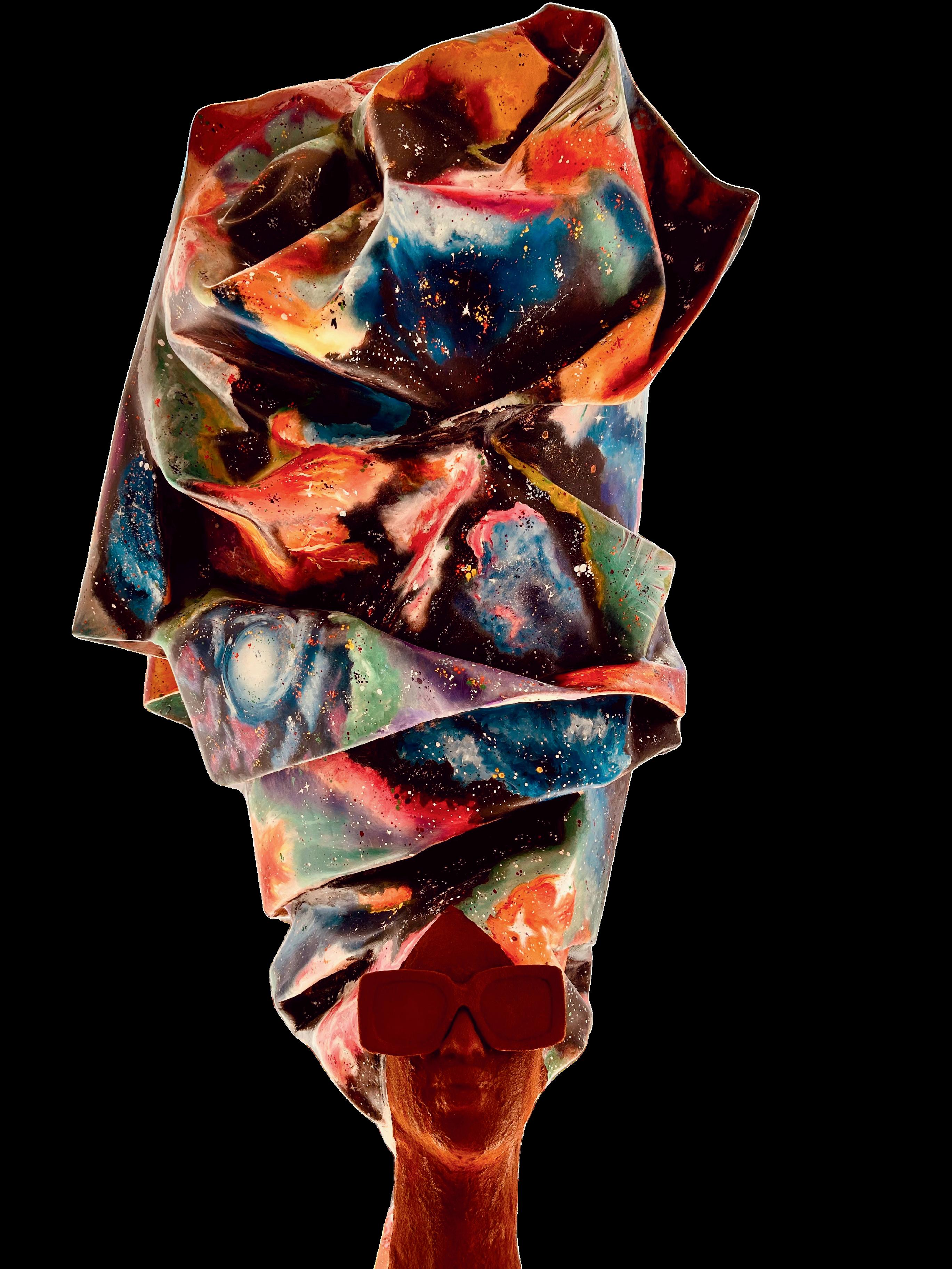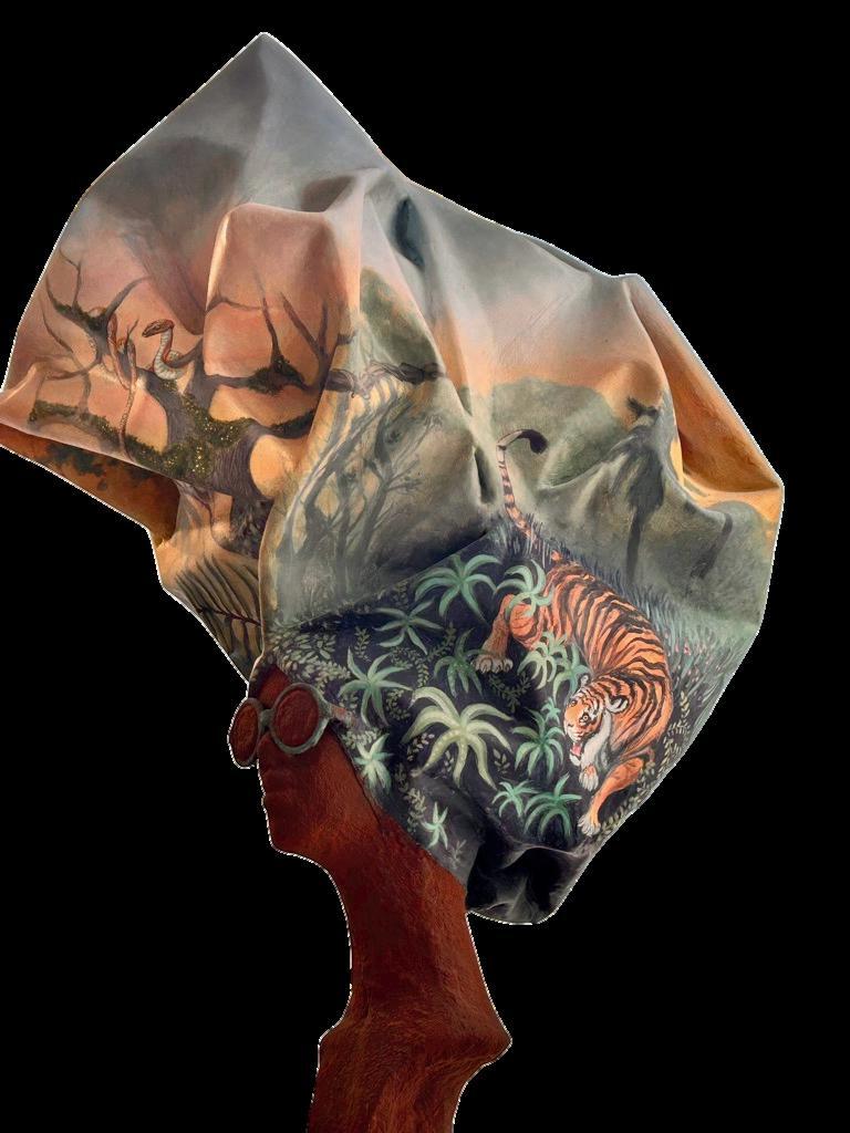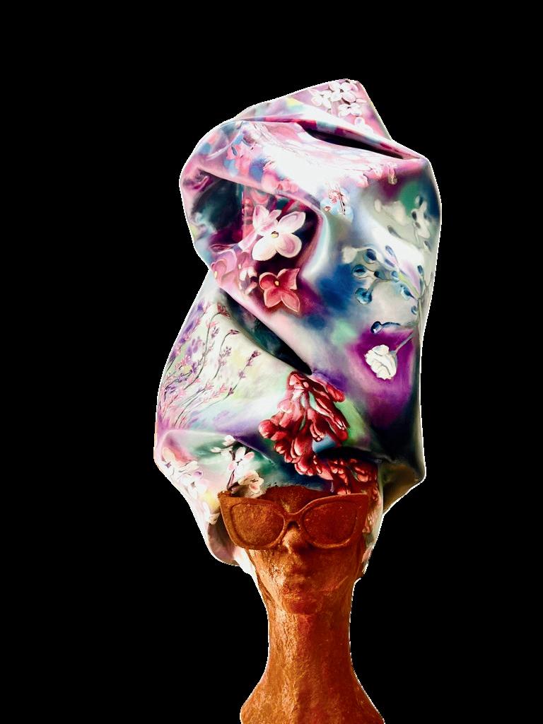 Our 8 year theme draws inspiration from the Lava Crown Chakra sculpture. Our first attempt to imbue a soul into a headwrap, our meditation in motion . At the soul of this sculpture are three feminine forces:
