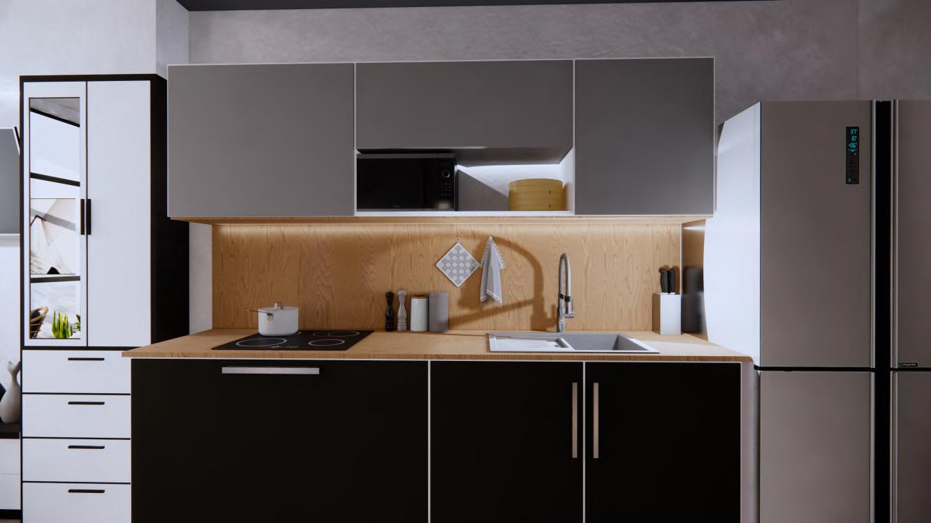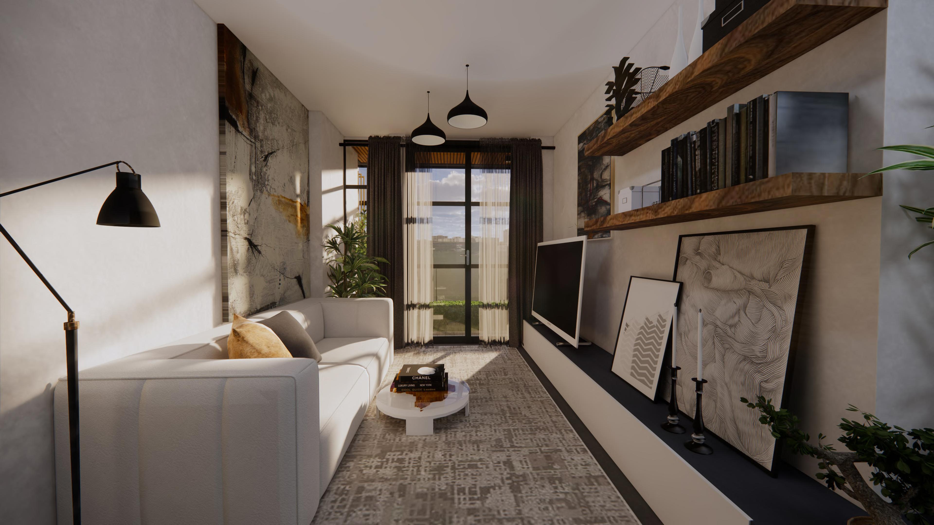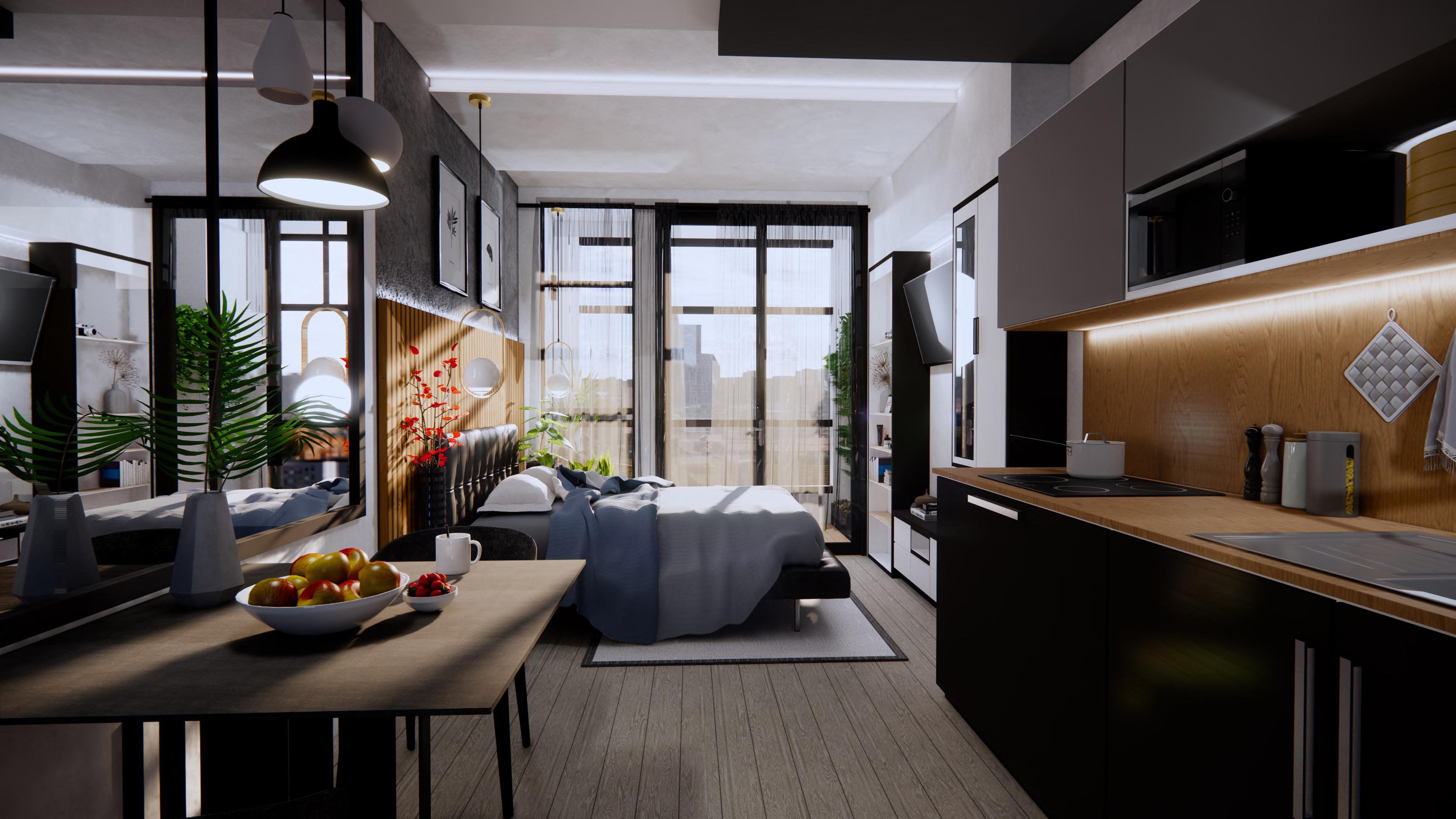 Two distinct designs are offered for this one bedroom property, giving prospective tenants the opportunity to select a preferred space to live. With the same laid back and natural vibe, these two spaces possessed contrasting moods. In accordance with the users' preferences, each design exhibited a distinct warm and cool elegant approach.