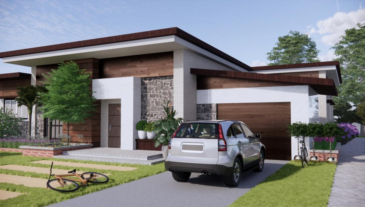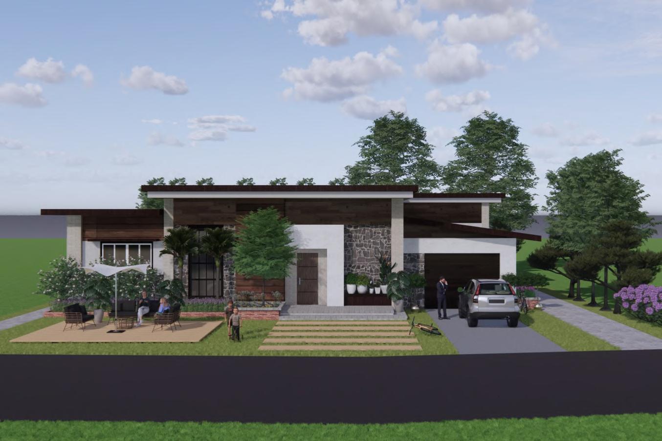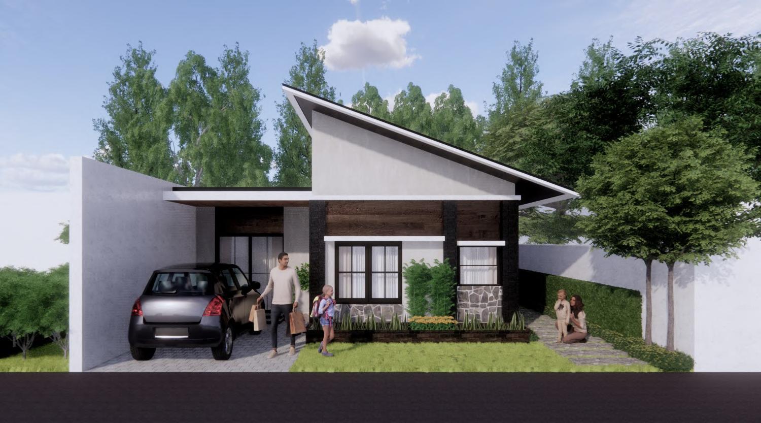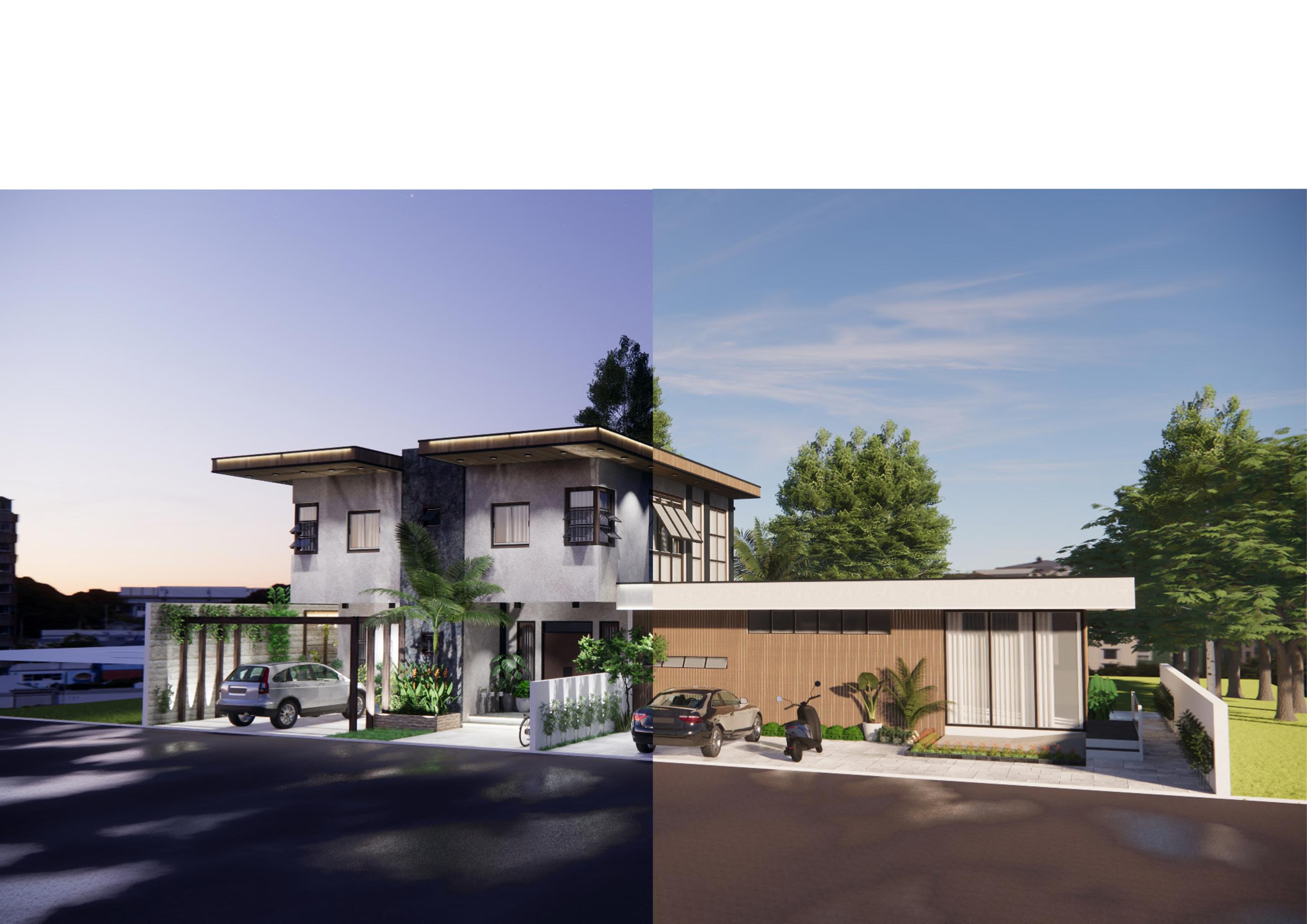 This project's design problem is to build a one storey house on a 15 by 10 meter property lot retaining a firewall on the left side and that include spaces for the master bedroom, a common bedroom, a toilet and bathroom, a separate dining area from the kitchen, a living area, and a carport. I considered which areas should have natural ventilation and light when designing the spaces. To keep up with thermal and climatic conditions and keep in mind the design aspects of the project, I used a contemporary design style with an influence of tropical design for this project.