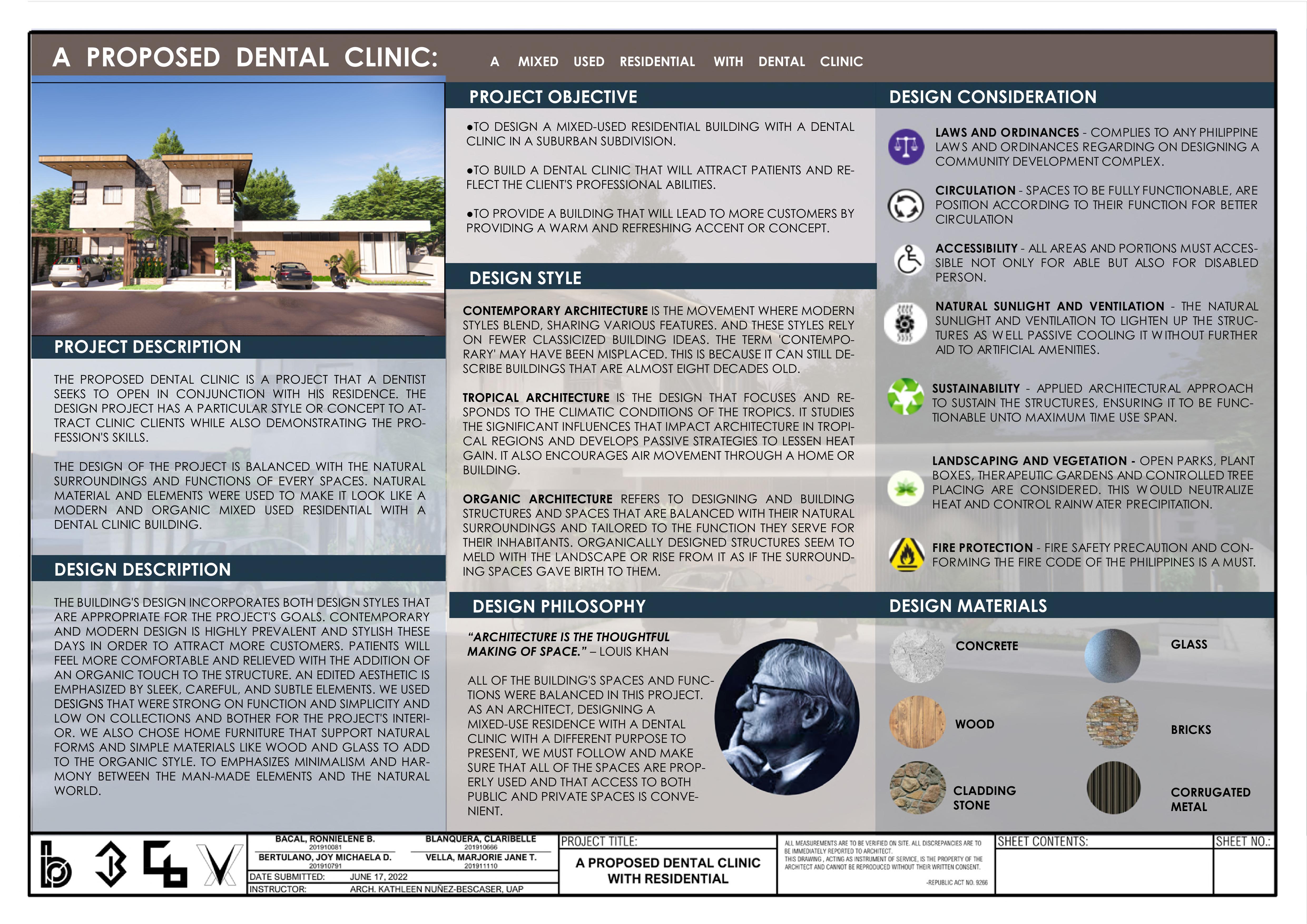 This project serves as our final requirement for Building Technology III and involves a team of four members. It encompasses various elements, such as architectural plans, lighting and power layout, plumbing layout, exterior and interior perspectives, and a welpresented concept sheet. The distribution of roles among us turned out to be seamless, as each team member excelled in their specific area of expertise.