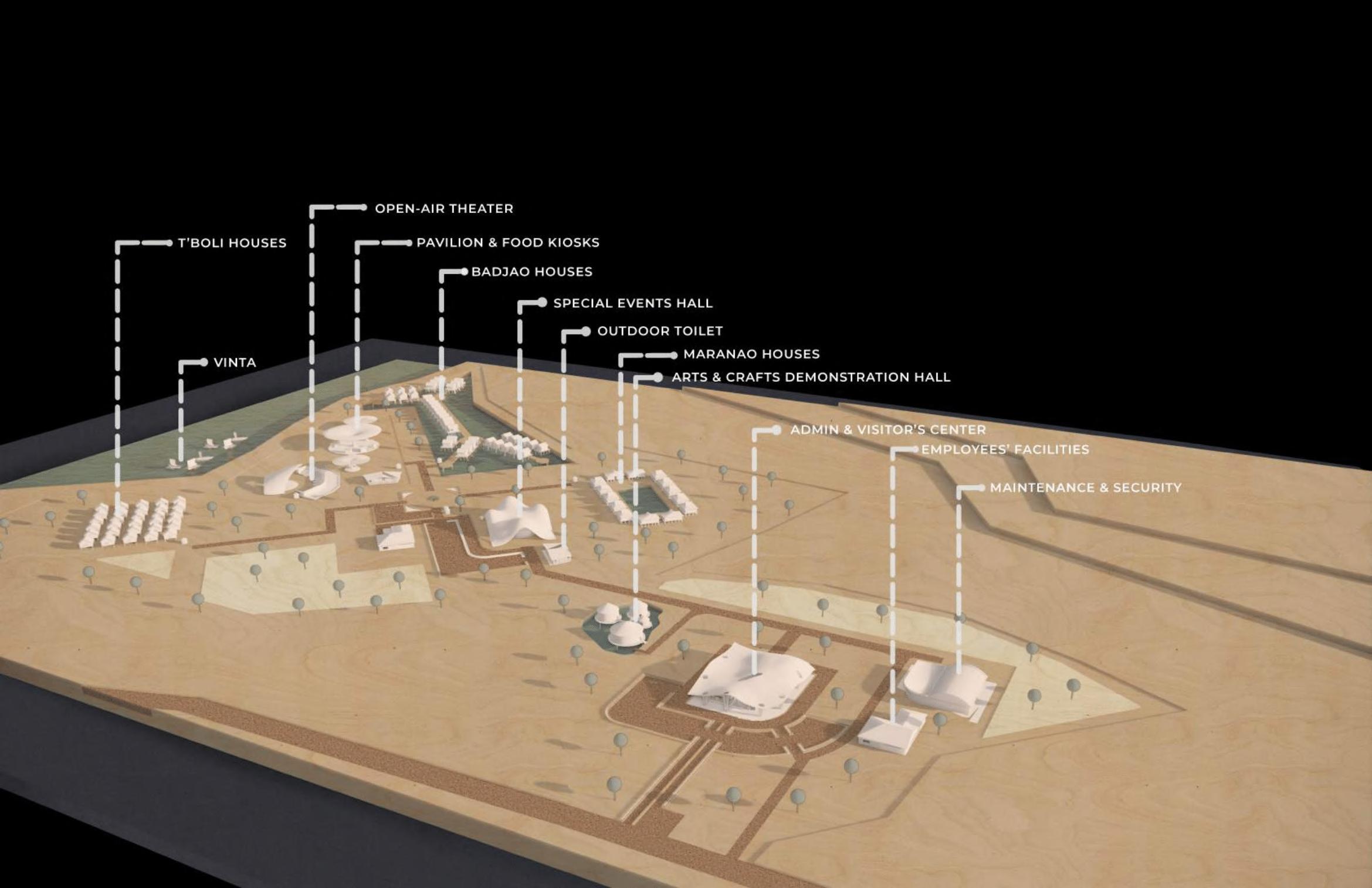 A cultural public toilet may be unfamiliar to you, but it is part of a cultural heritage village in which T'boli and Torogan House, which were mentioned previously, are also taking part. Since the goal of the collaboration is to introduce Mindanao's culture and traditions in a contemporary manner, users will feel as if they are returning from the past with a sense of the future. That is what I am keeping in mind while I plan and design this public toilet.
