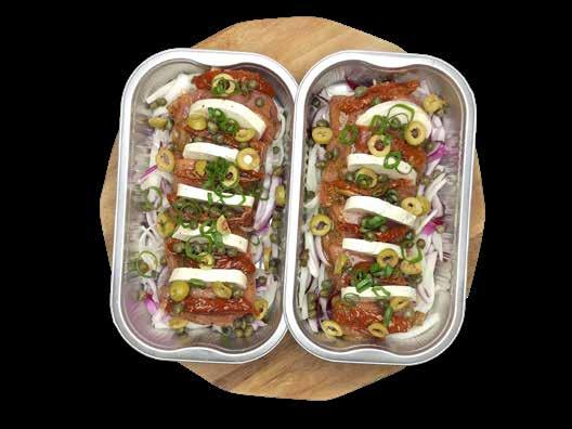 en tijm. Bereidingsadvies: Afbakken in voorverwarmde oven 10 minuten 170 graden. Benodigdheden: • 10 stuks Afbak pistolet • 300 g Verstegen Loaded topping italian - art.nr. 1120803 • 40 stuks Mortadella gesneden plakjes • 20 stuks Mozzarella bolletjes • 20 g Paprika (geel, grof gesneden) • 20 Cherry tomaatjes • 10 Rozemarijn vers • 10 Tijm vers • 40 Verse basilicum blaadjes SMULSLOF Italian Scan voor ons assortiment
