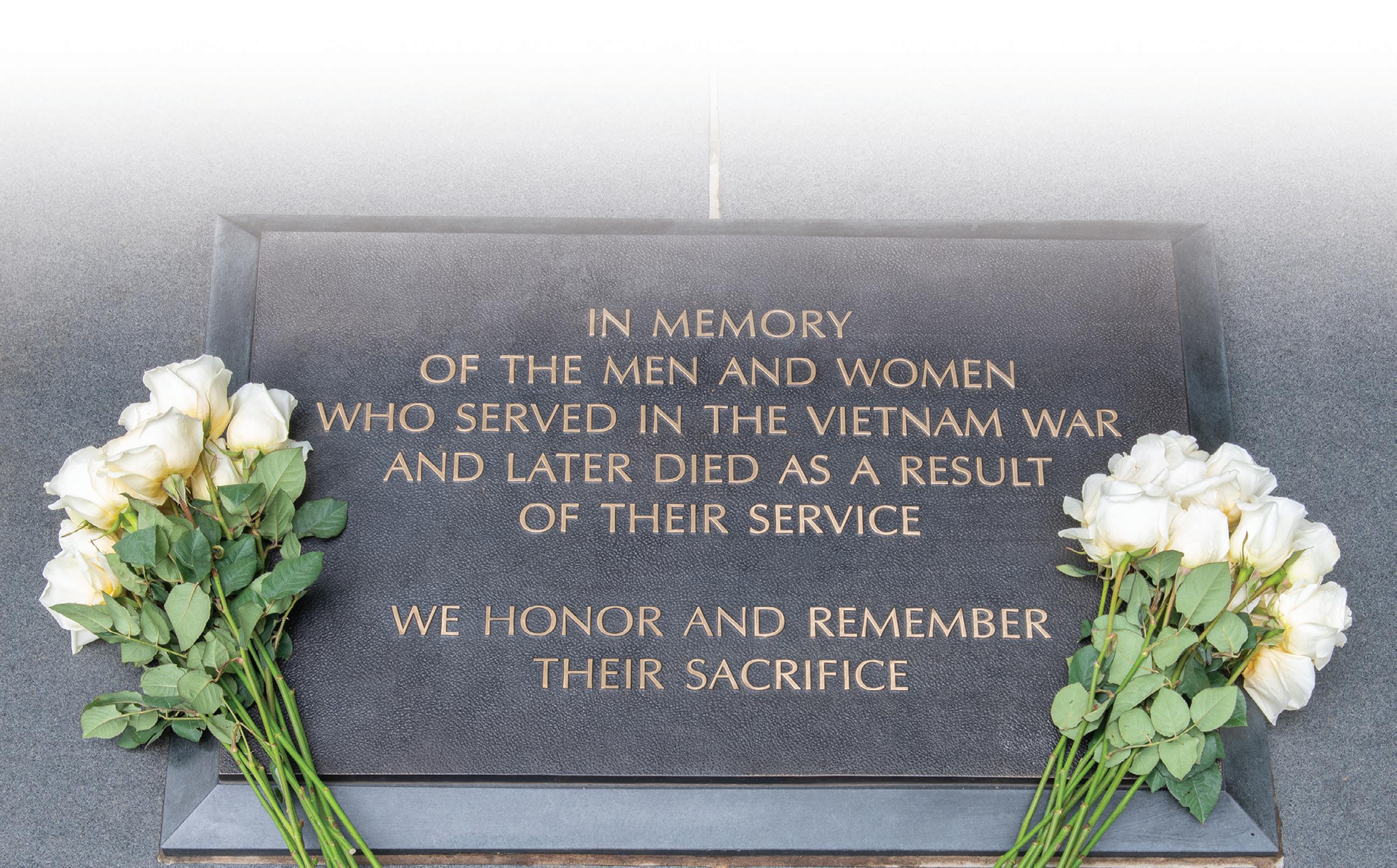 The plaque that honors these veterans was dedicated as part of the Vietnam Veterans Memorial in 2004. It reads: In Memory of the men and women who served in the Vietnam War and later died as a result of their service. We honor and remember their sacrifice.