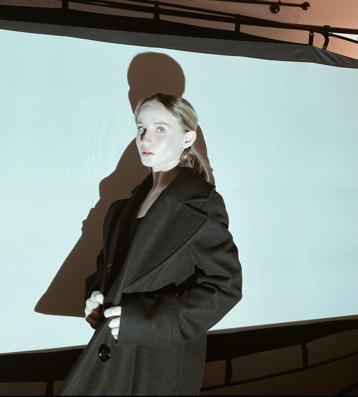 Afewhoursintoourday-longcovershoot, we all sat down in Ella’s living area and set up a beige sheet to snap some more photos. Lindsay’s got on a lengthyandlacybluedresswithablack sweateronover,someblueMaryJanes onoverfrilledsockstomatchthe‘vibe.’