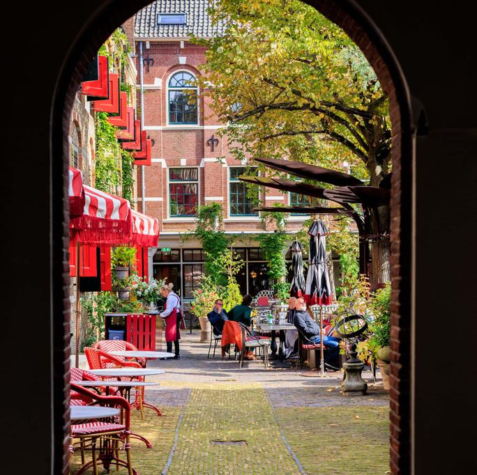 In de romantische tuin van Museum Gouda, langs de grachten en in de steegjes rond de Sint-Janskerk zit ook een keur aan restaurants, gezellige cafés en terrassen verstopt. O.a. de volgende restaurants vind je in de historische straten of op een bijzonder plekje: Hofje van Jongkind, Restaurant LIZZ, Museumcafé Gouda, Bij Ons, Henderick Bistro Bar, Kruim, Eetcafé Vidocq, KECK., Brownies&DownieS