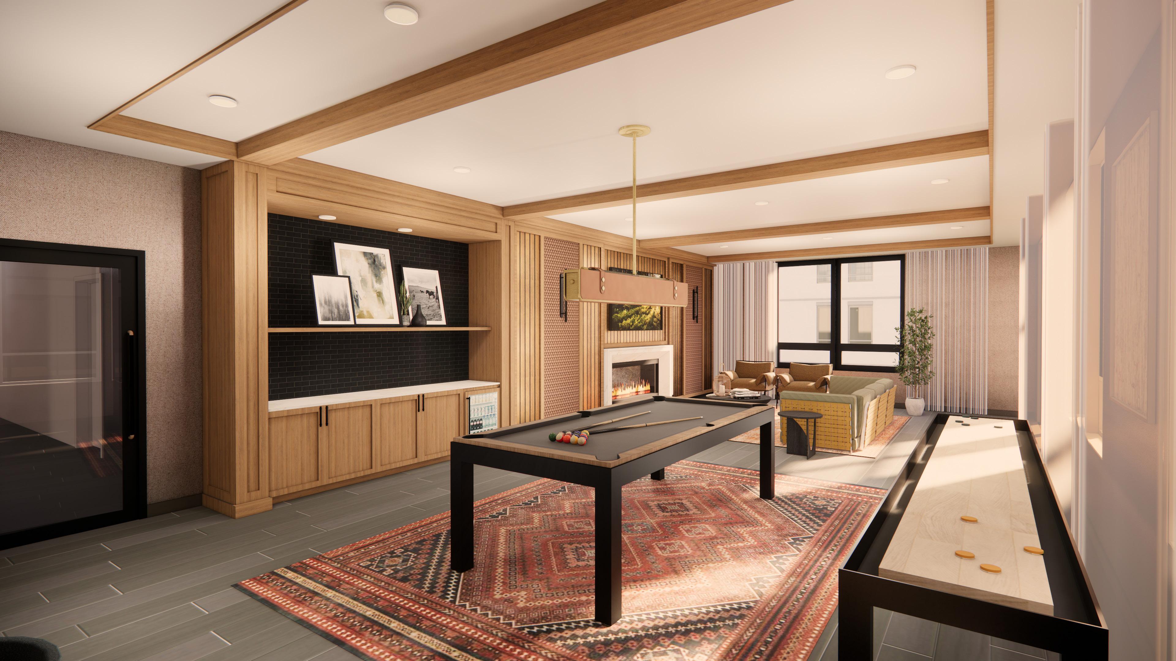 L4 GAMEROOM WITH WOOD BEAM CEILING AND FIREPLACE