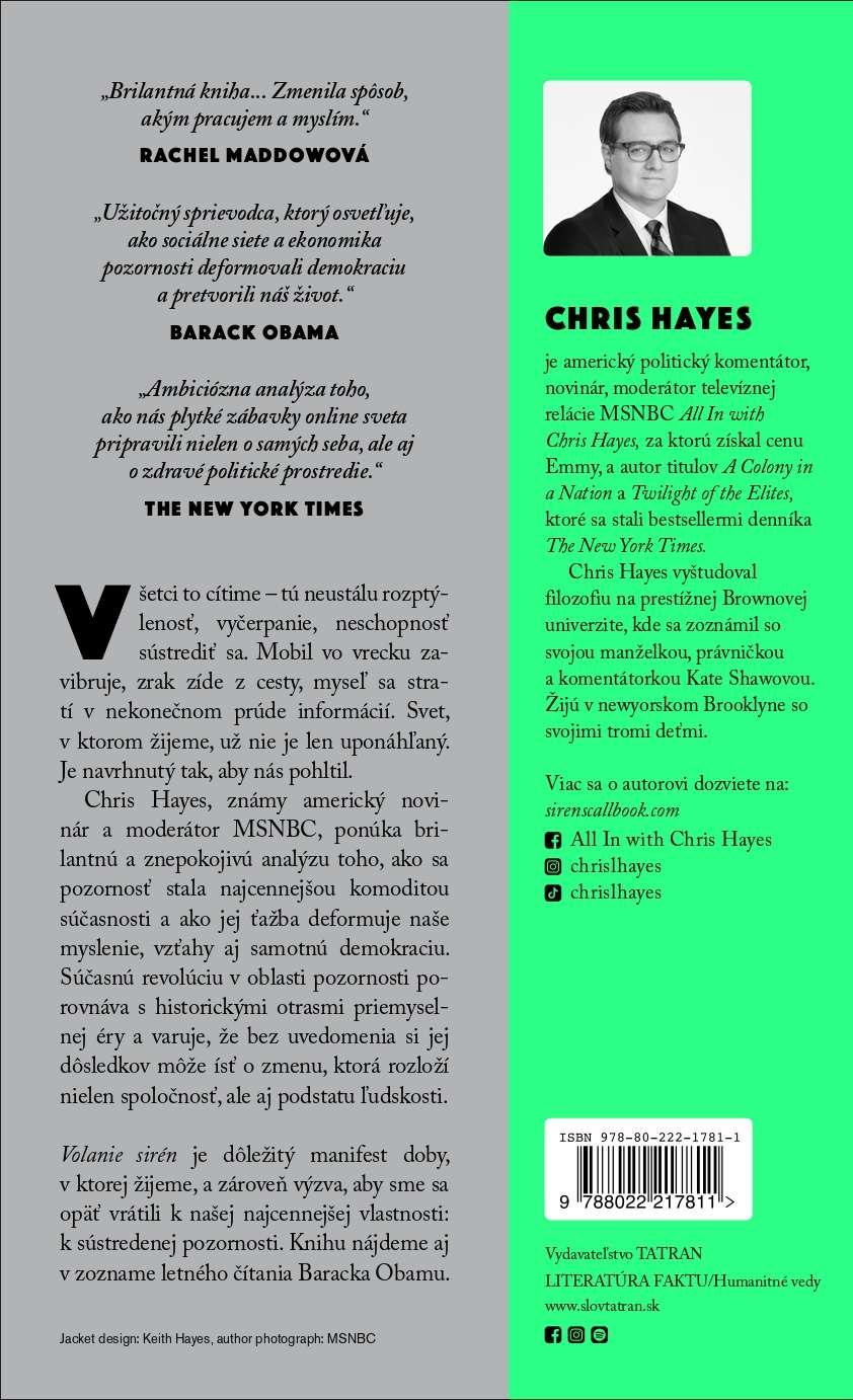 Vzhľadom na to môže snaha prepojiť pôvodný význam slova siréna s jeho dnešným využitím pôsobiť trochu zvláštne. V súčasnosti nám totiž slúži ako označenie rušivého zavýjania prístroja na streche sanitiek alebo policajných áut. To prepojenie je tu však prítomné a je dokonca aj veľmi hlboké. Práve ono je navyše kľúčovým pozorovaním, z ktorého vychádza táto kniha, a je aj kľúčom k pochopeniu povahy života v dvadsiatom prvom storočí.