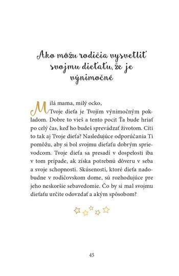 Zaskočenú a smutnú Máriu zázračne povzbudí dôverný rozhovor s mamičkou, keď začala chodiť do školy. Noví spolužiaci, na ktorých sa tak veľmi tešila, ju ignorujú a vylúčia zo svojho stredu. Mária je iná, nemá značkové oblečenie a telefón, no učitelia si ju nevedia vynachváliť. Mamička Márii vysvetlí, v čom je výnimočná, aká je na ňu veľmi hrdá a vleje jej sebadôveru, ktorú začala strácať. Celý príbeh je inšpirujúca kniha o tvorivosti, odvahe a sile, ktorá nás v útlom veku nasmeruje k tomu, aby sme si neskôr splnili svoje detské sny. Pretože si výnimočná... je povzbudením a príkladom aj pre rodičov, aby svojim deťom podali pomocnú ruku v pravej chvíli a všímali si ich detské problémy, ktoré nie sú o nič menšie ako tie naše.