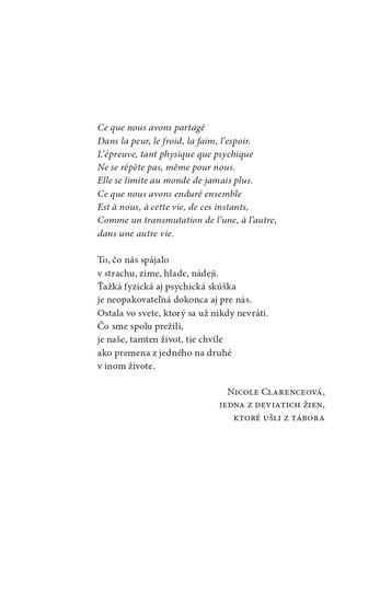 V núdzi spoznáš priateľa. O tom sa presvedčí aj Hélène Podliaska, hlavná hrdinka románu Gwenn Straussovej. V najtemnejšom období minulého storočia pôsobila ako členka Hnutia odporu v okupovanom Francúzsku, za čo ju poslali do nemeckého pracovného tábora. Tu sa spolu s ďalšími ôsmimi väzenkyňami rozhodli vziať osud do vlastných rúk. Podarí sa im utiecť? Zvládnu cestu do vlasti vojnou zmietanou Európou?