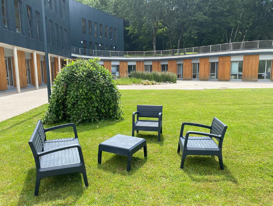 Le mobilier a été choisi pour son faible impact environnemental. Par exemple, les salons de jardin sont en plastique recyclé et recyclable !