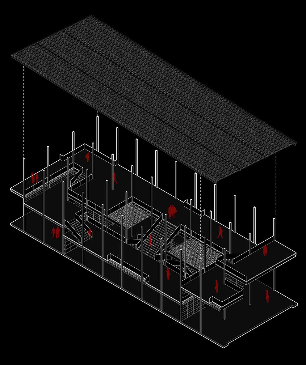 The Green Machine is a multi-use building that challenges the existing Market Experience and integrates a green environment within an urban condition. The life cycle of food is represented in between programs. Each of the programs is all benefiting from the large greenhouse in the center of the project. The market floor is a center for buying and selling produce and acts as a connection between the building and the community. This market floor is surrounded by a flexible exterior “community avenue” which allows the users to experience different types of vending and interaction with nature. On the second floor, there is a dedicated restaurant that cooks organic food, primarily from the greenhouse. The roof structure acts as an invitation to the community and access to all three floors. Along this roof, there are gardening components for the Benson area to have a communal garden space. In all, a user gets to experience the growing, eating, buying, and selling of fresh produce all in one place.