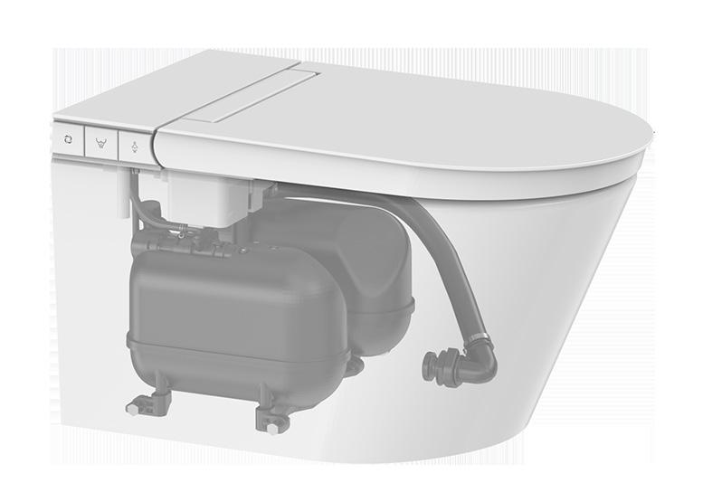 Ein Dusch-WC, das ohne Strom und ohne Spülkasten auskommt.