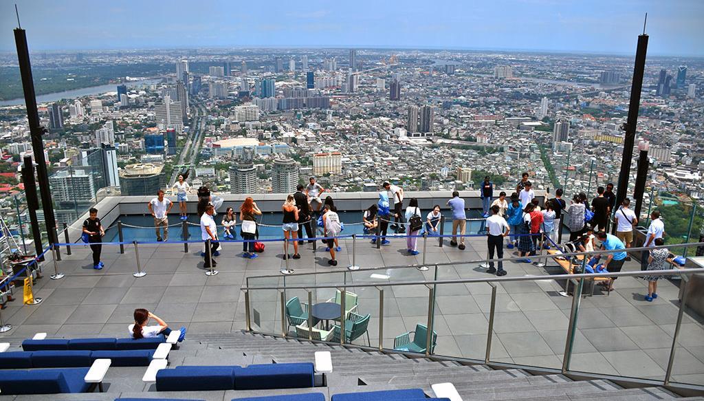 Op 314 meter boven de grond heb je het hoogste uitkijkpunt van Bangkok bereikt; als de lucht helder is, kun je niet alleen de hele metropool zien, maar zelfs helemaal tot aan de Golf van Thailand. Avontuurlijke bezoekers die geen hoogtevrees hebben, kunnen uitstappen op de glazen plateaus en naar beneden kijken voor een werkelijk vogelperspectief. De rooftopbar serveert kenmerkende cocktails misschien de perfecte plek voor een drankje bij zonsondergang? Dagelijks geopend tussen10:00-19:00, laatste toegang om 18:30