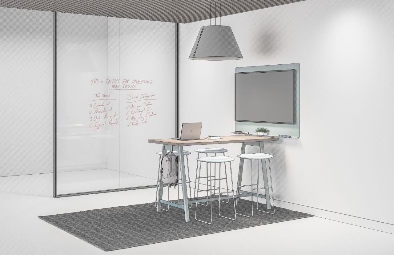 Ideal spaces are sized and designed for different styles of virtual interaction: one - on - one meetings, paired work, and small group collaboration all benefit from unique configurations.