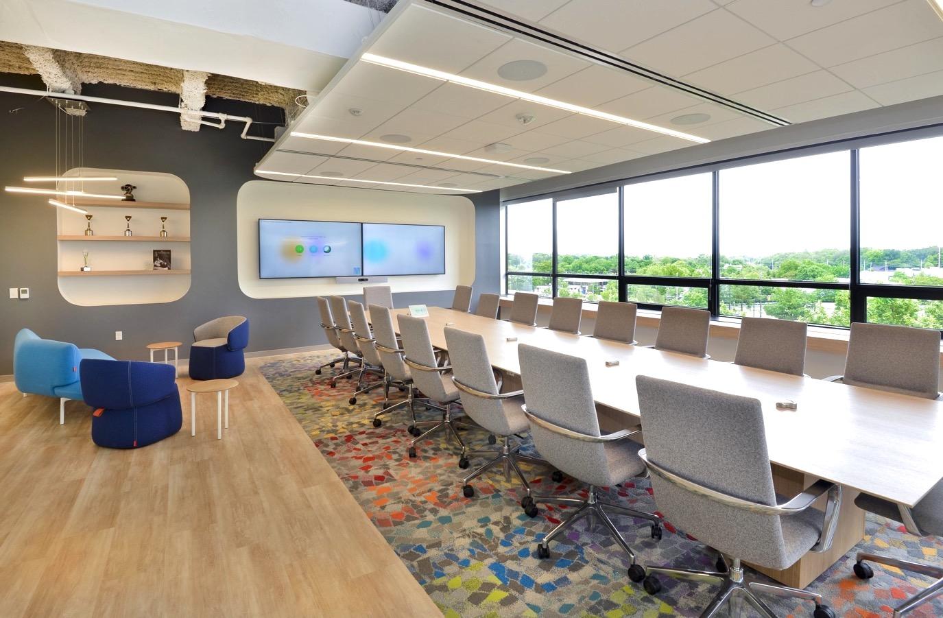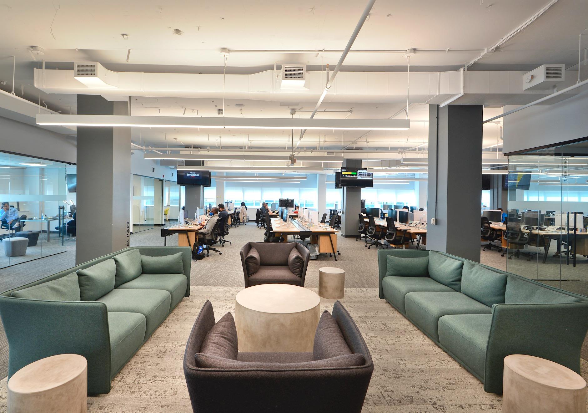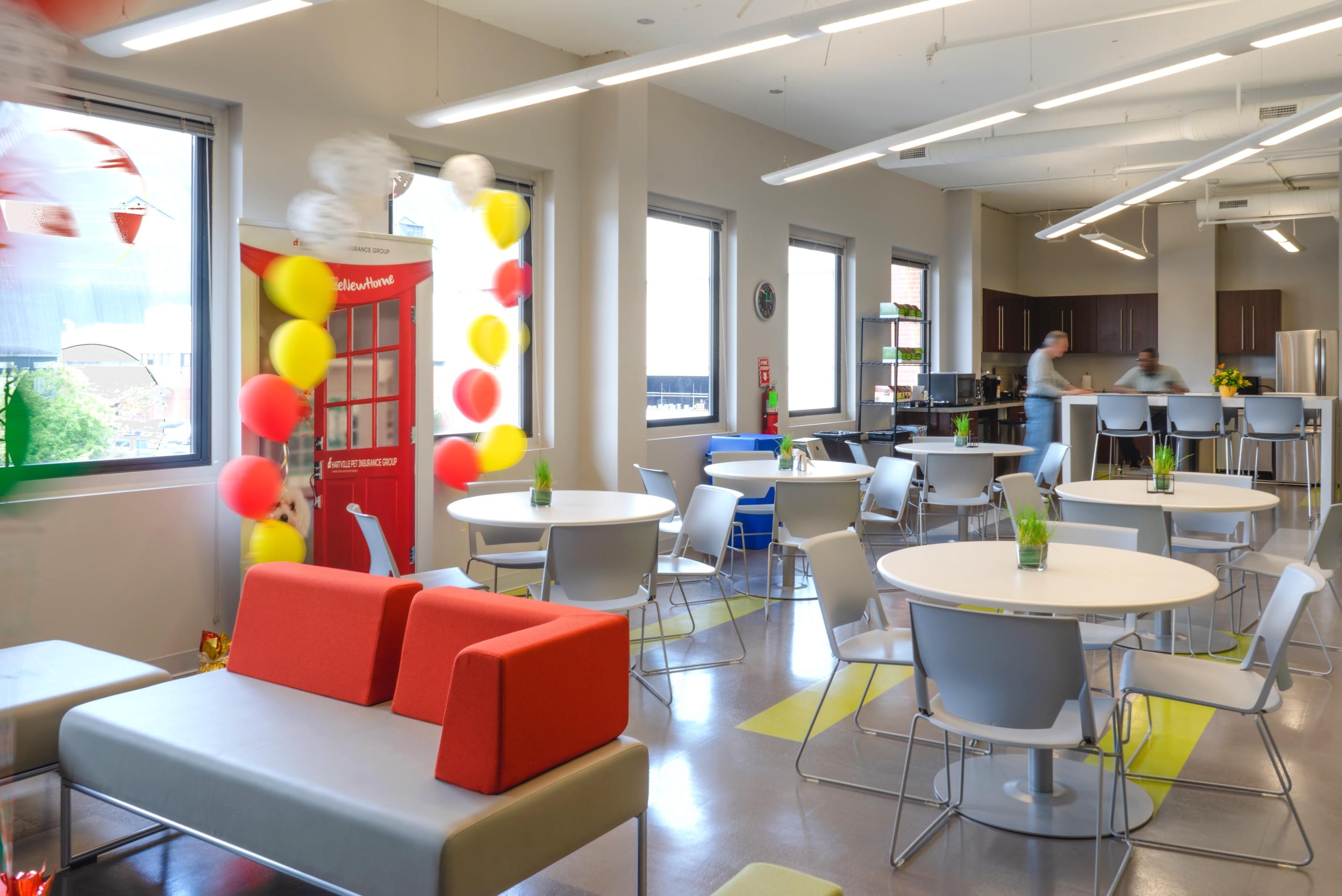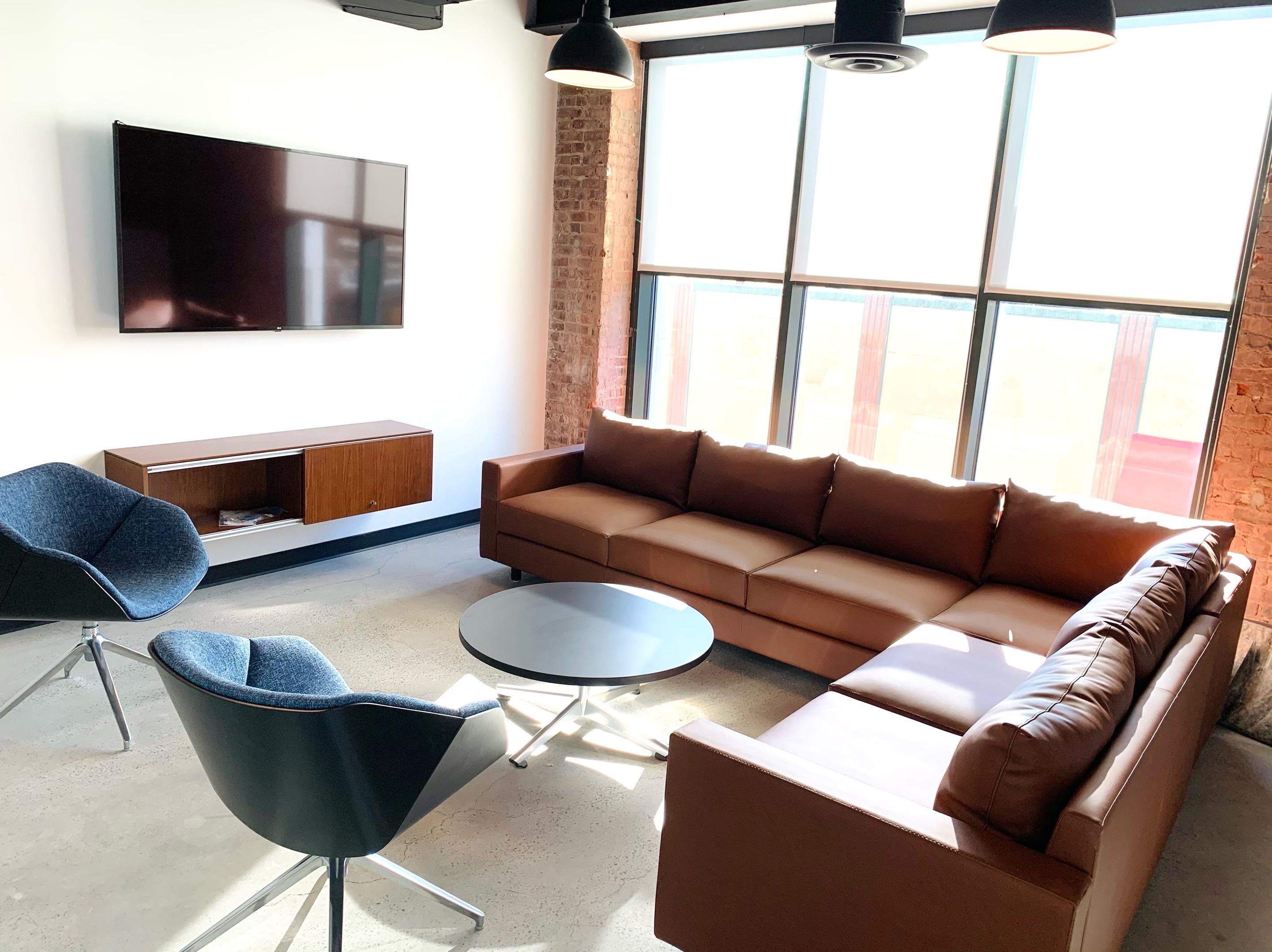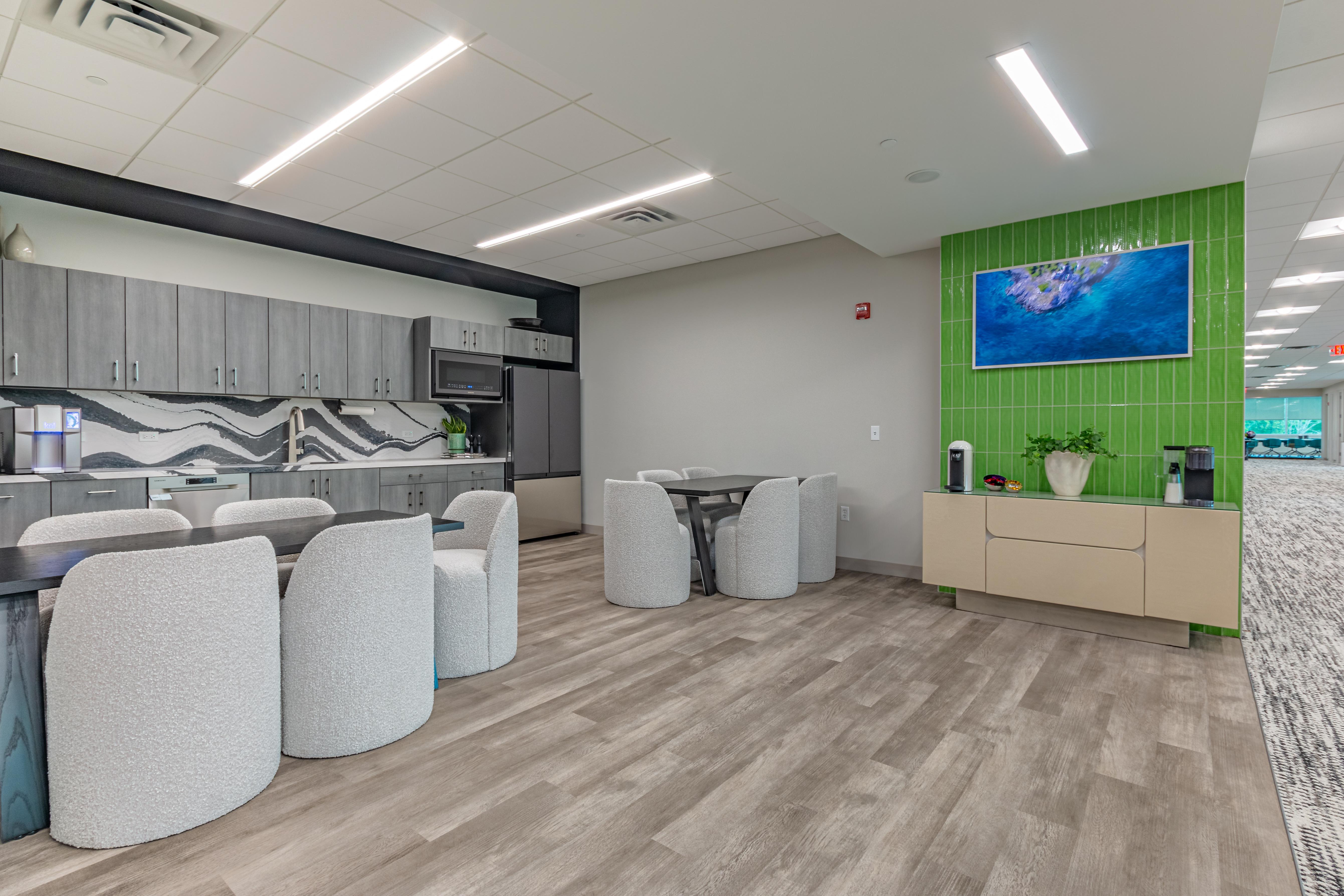 • Modular lounge furnishings that allow dual use of break spaces for small group collaboration or town hall events